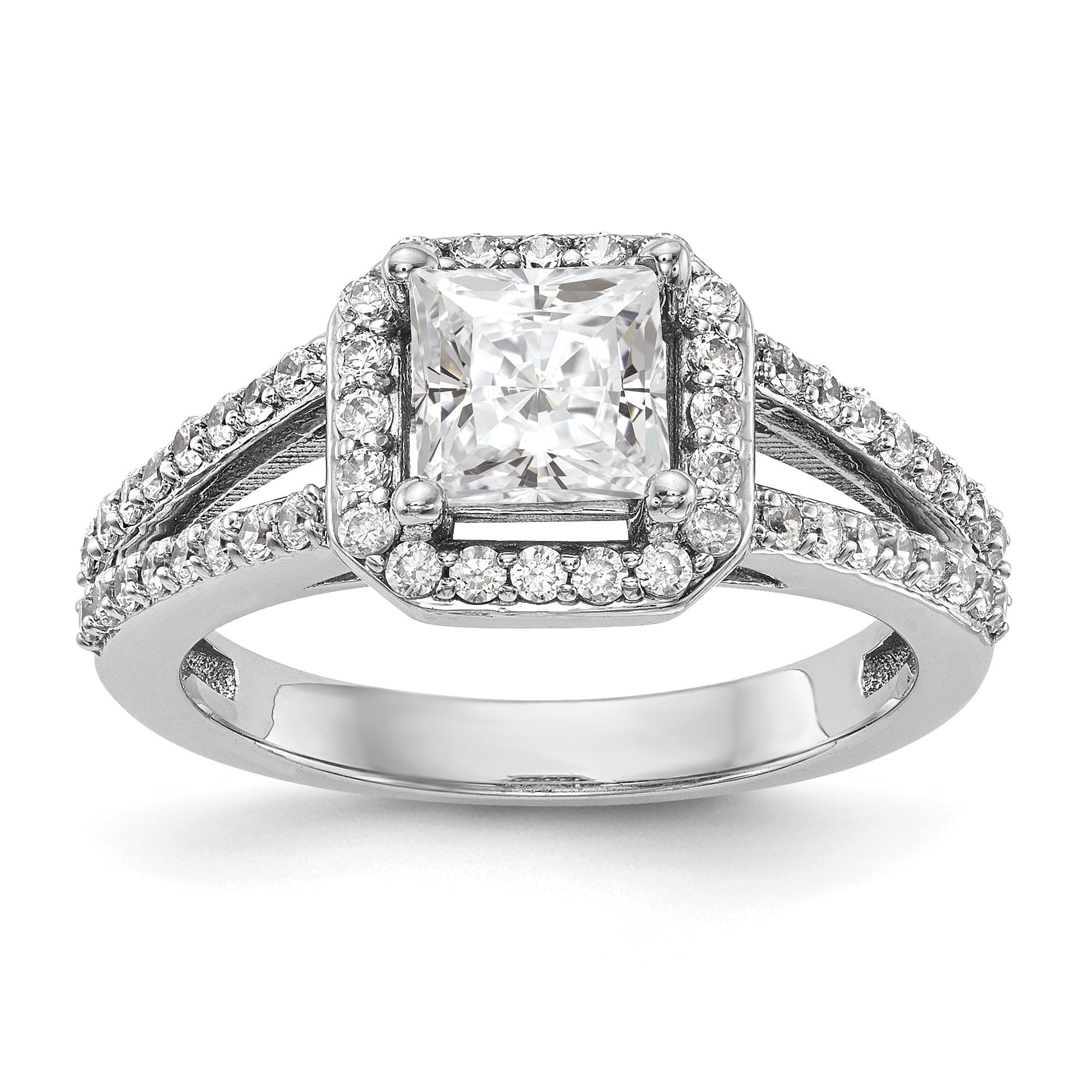 14K White Gold Diamond Princess CZ Cushion Halo Engagement Ring