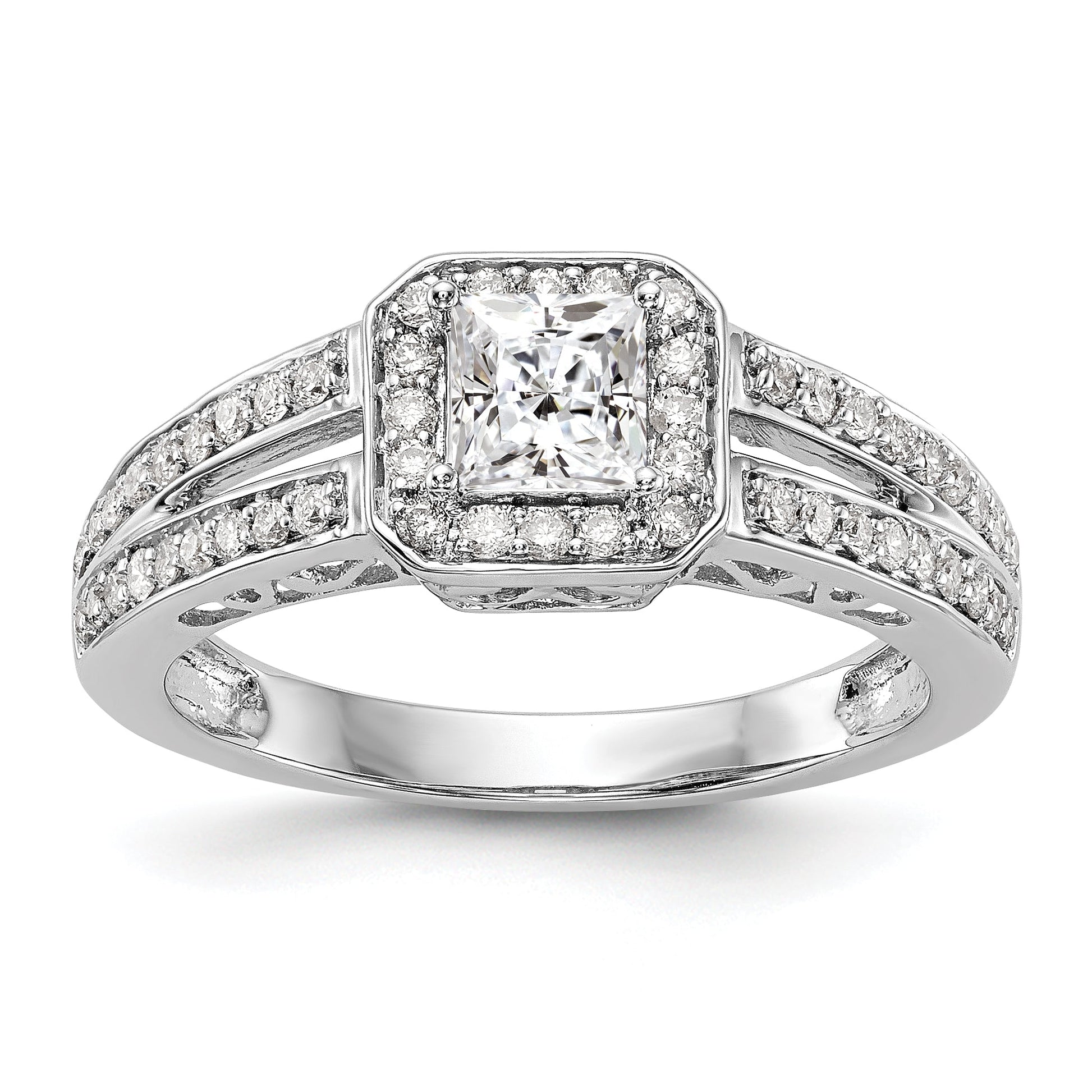 14K White Gold Diamond Princess CZ Cushion Halo Engagement Ring