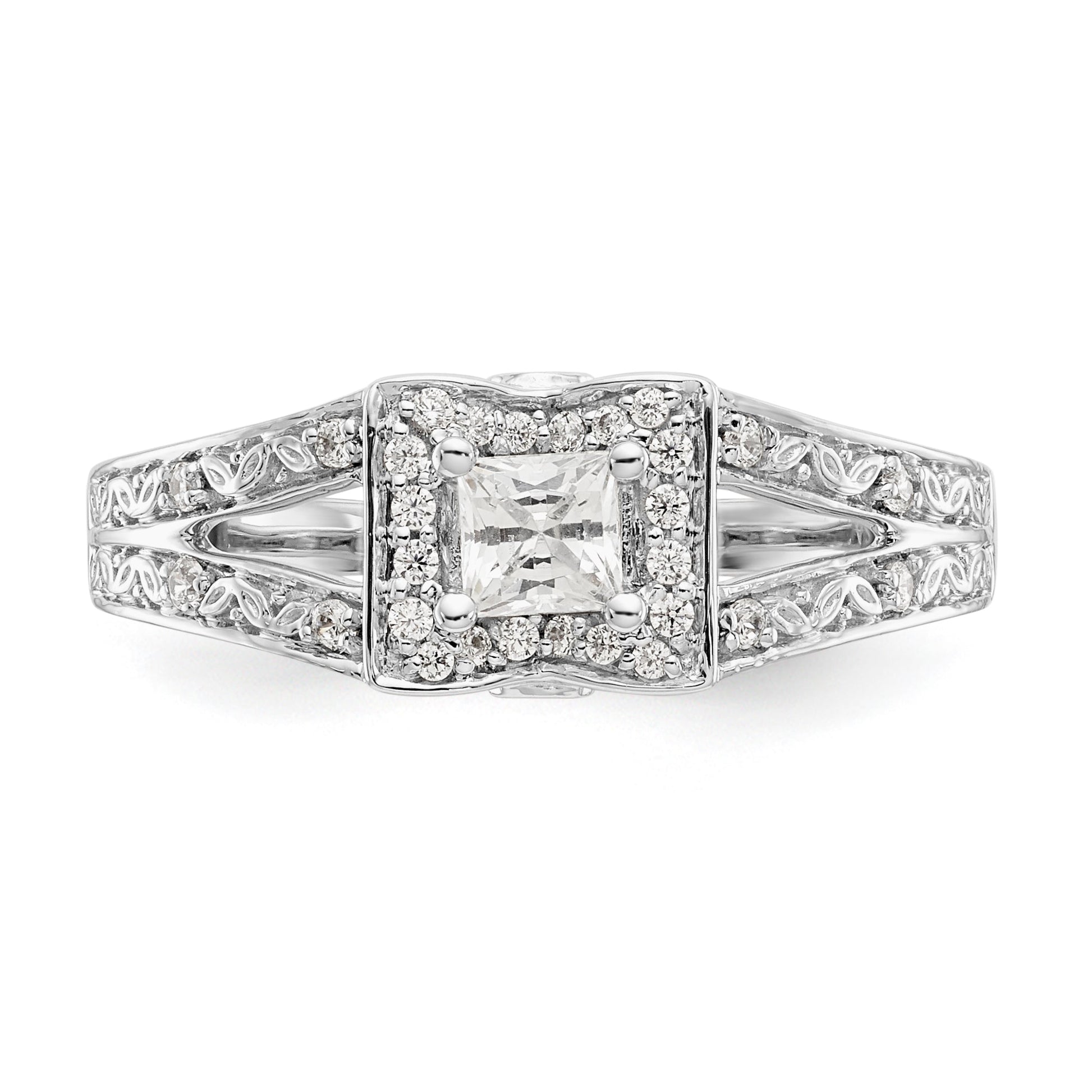 14K White Gold Diamond Princess CZ Cushion Halo Engagement Ring