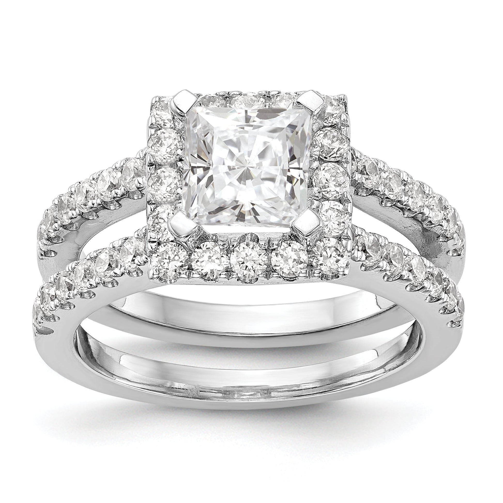 14K White Gold Diamond Princess CZ Cushion Halo Engagement Ring