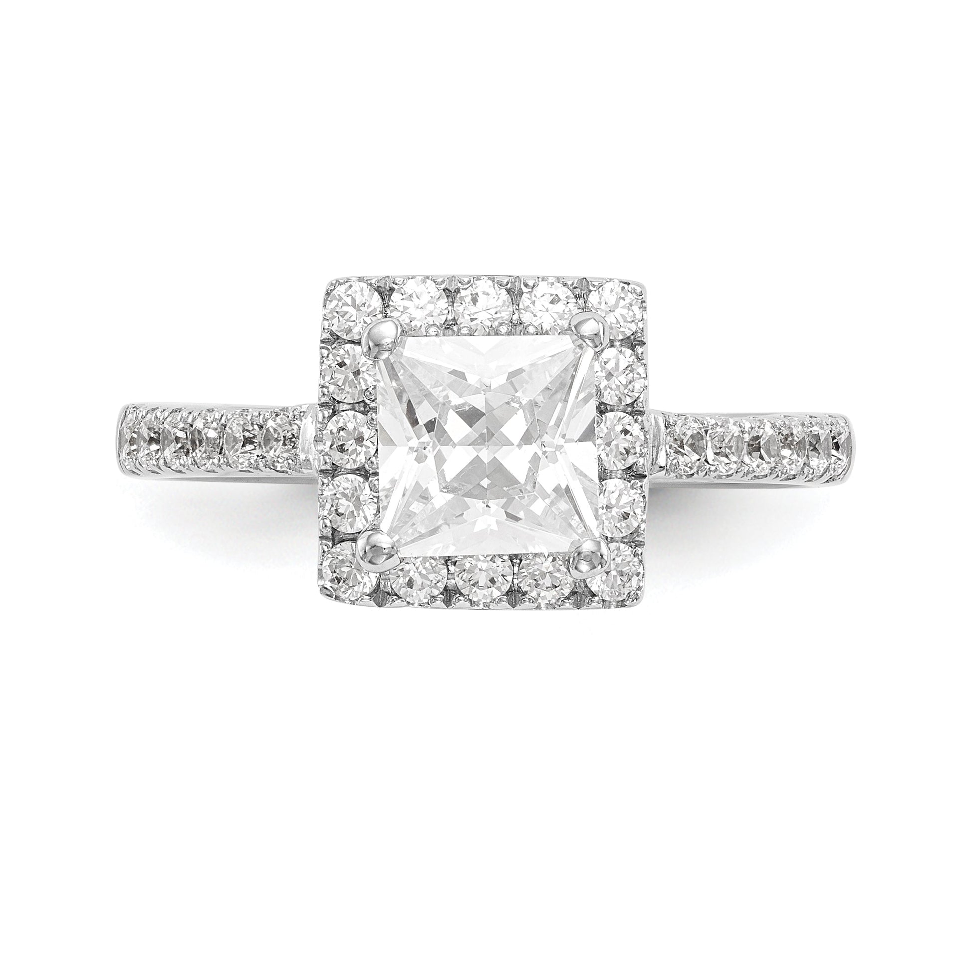 14K White Gold Diamond Princess CZ Square Halo Engagement Ring
