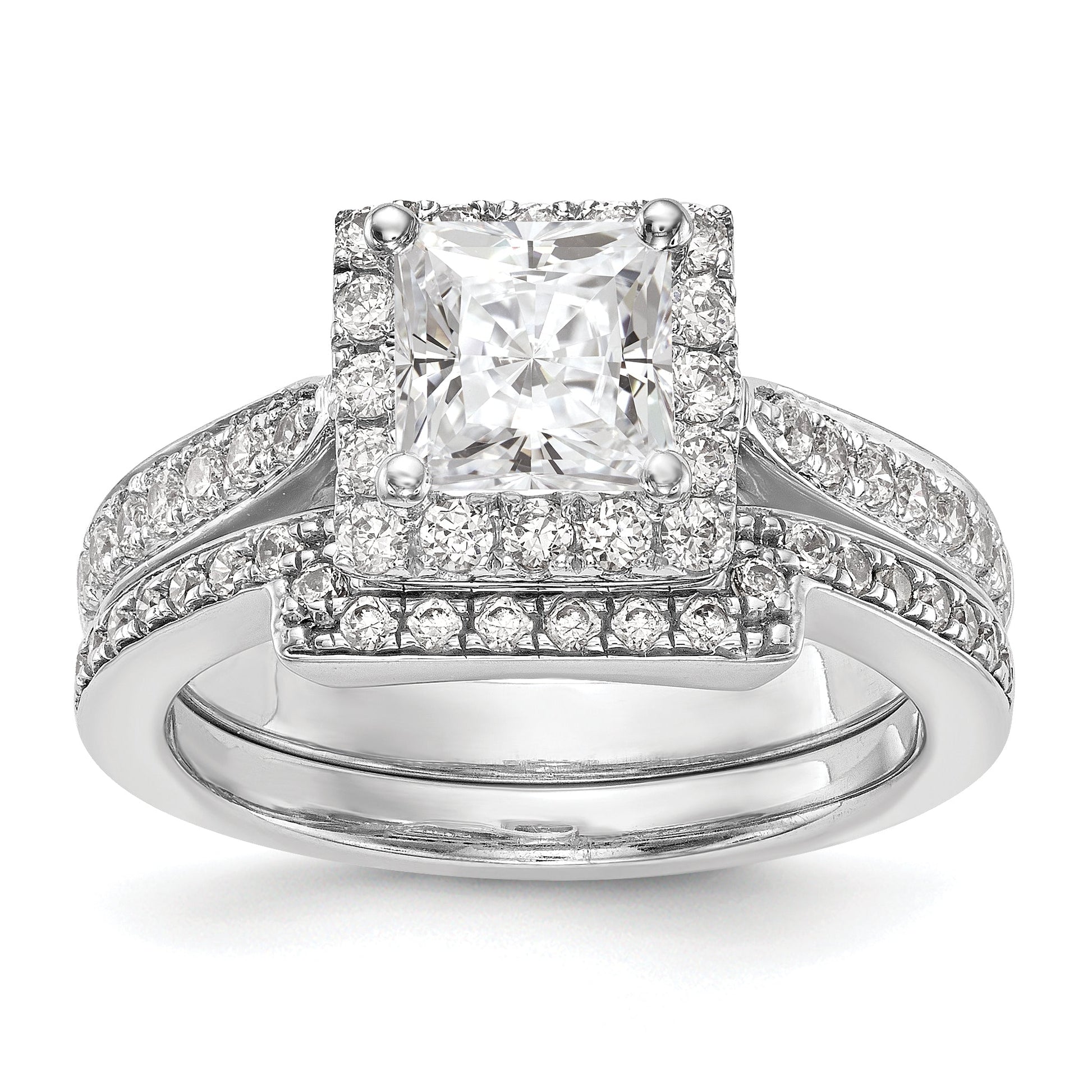 14K White Gold Diamond Princess CZ Square Halo Engagement Ring