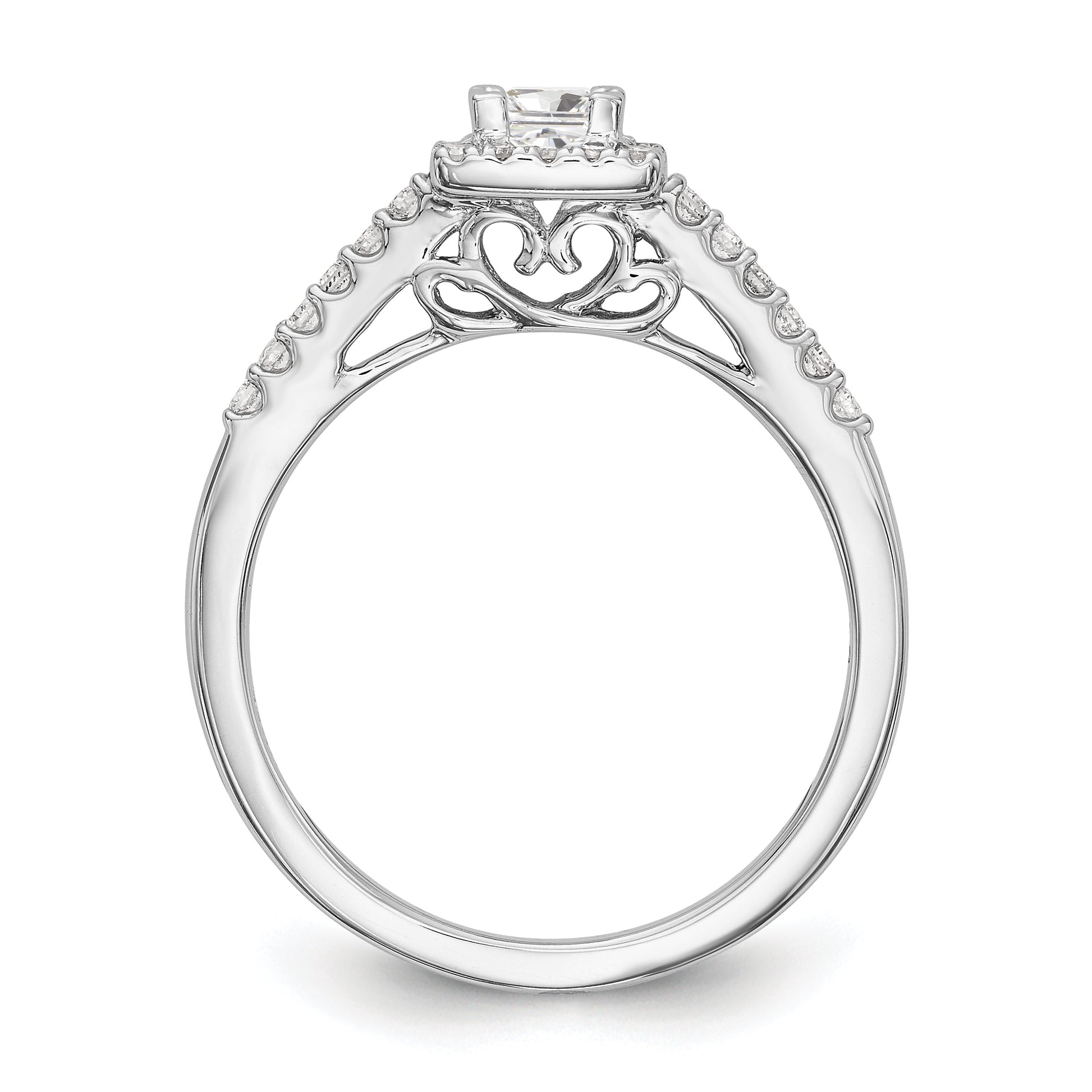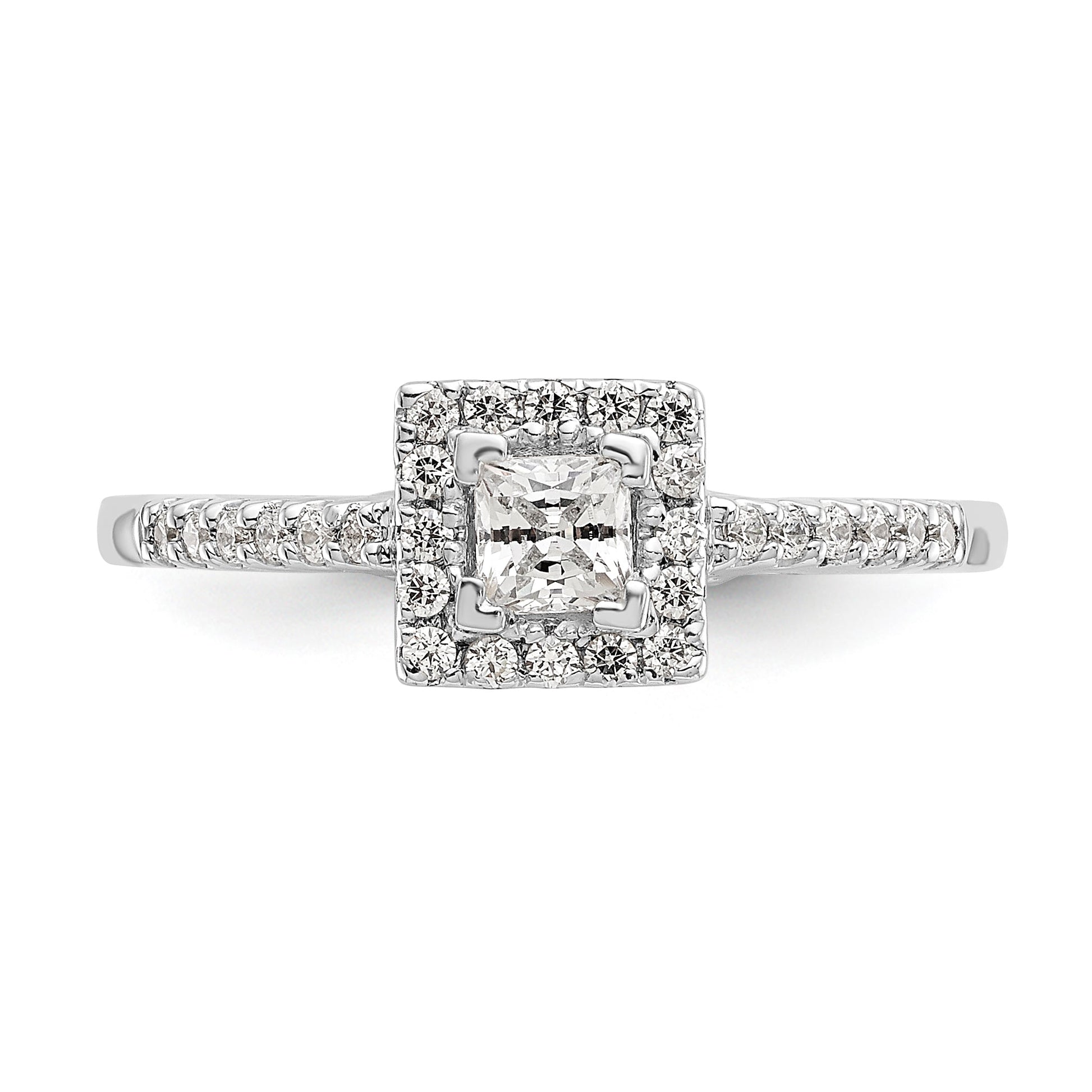 14K White Gold Diamond Princess CZ Square Halo Engagement Ring