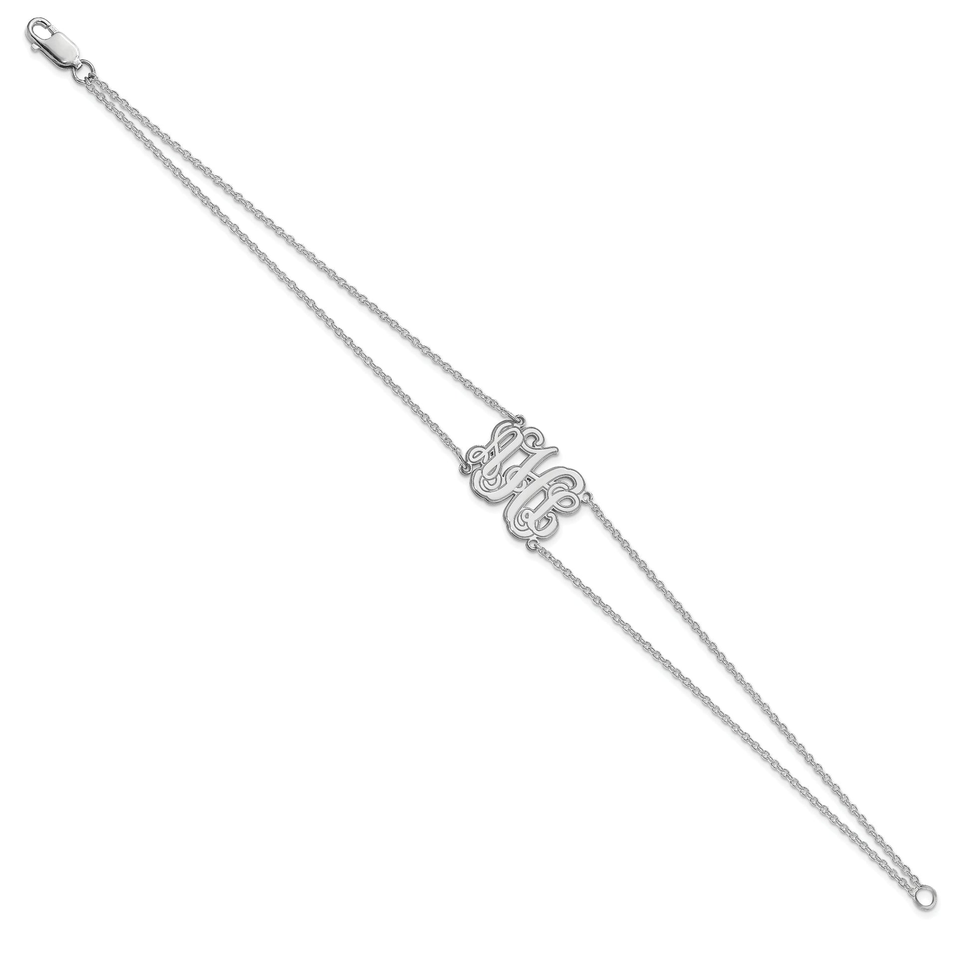 The 14K White Gold Double Chain Etched Monogram Bracelet is an elegant piece that shows off your style. Crafted from high-quality 14K white gold, it features a polished finish and laser-etched design that adds a personal touch. The rhodium plating prevents tarnish and keeps it shining bright. The lobster clasp makes it easy to put on and take off. This bracelet is perfect for women who want a custom and chic accessory. With its sleek double chain and personalized monogram, the 14K White Gold Double Chain Etched Monogram Bracelet makes a great gift or treat for yourself.