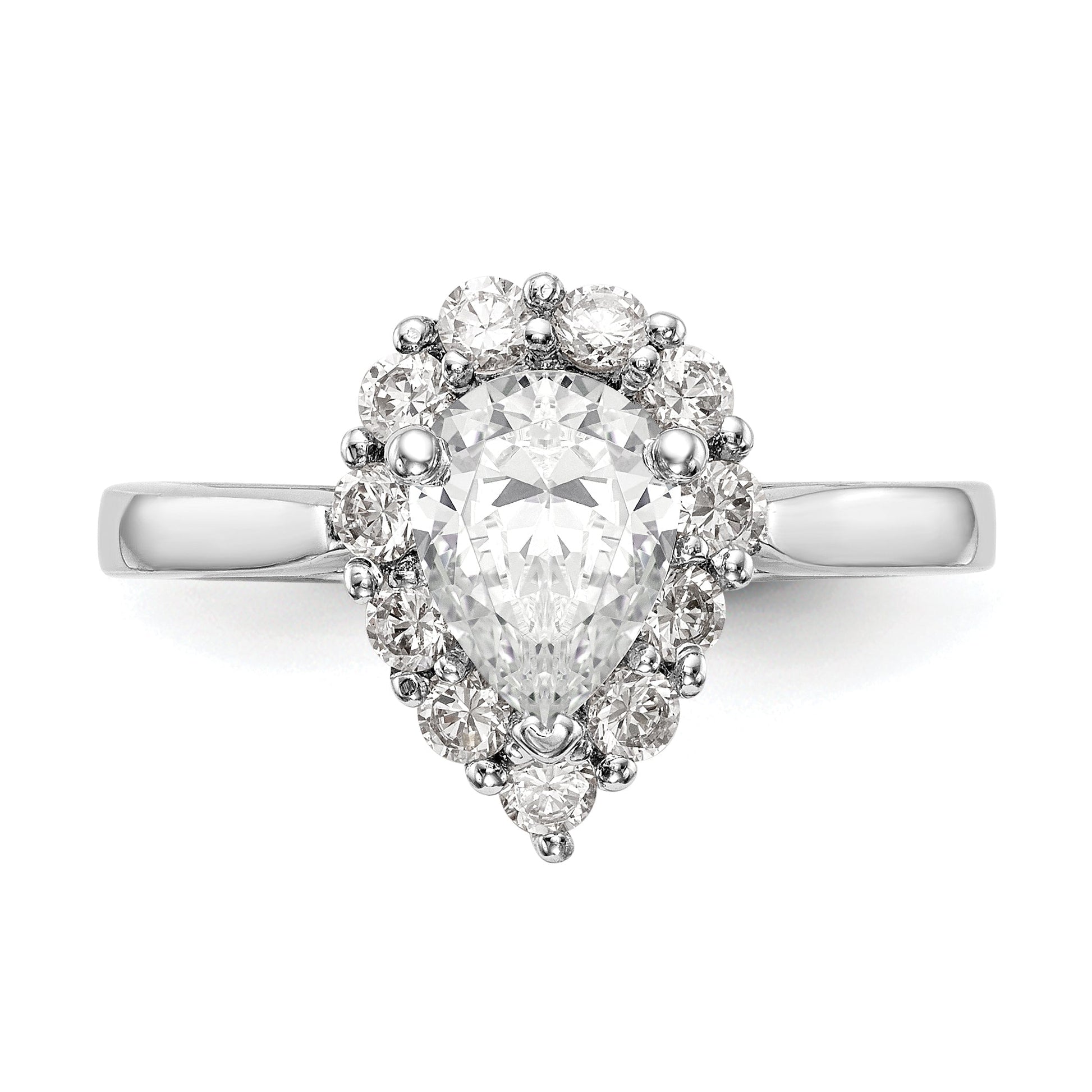 14k White Gold Pear Halo Engagement Simulated Diamond Ring