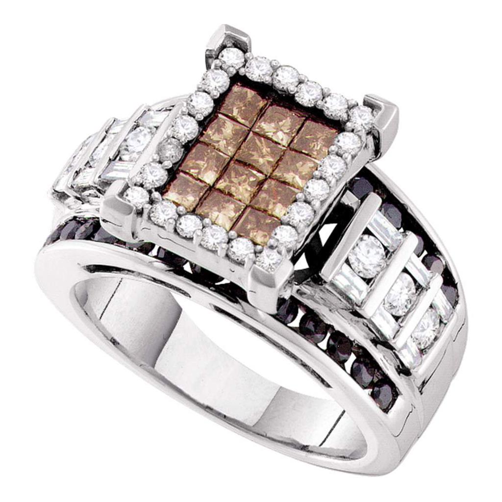 14k White Gold Princess Brown Diamond Cluster Bridal Engagement Ring 2 Cttw