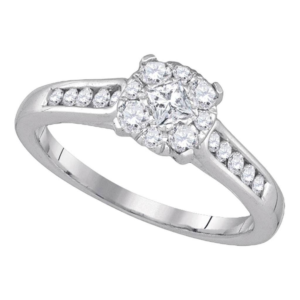 14k White Gold Princess Diamond Cluster Bridal Engagement Ring 1/2 Cttw