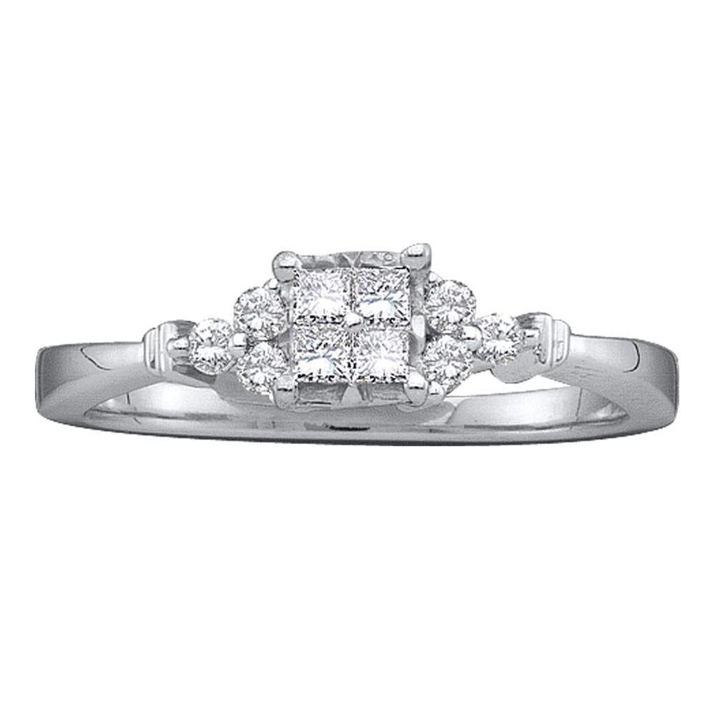 14k White Gold Princess Diamond Cluster Bridal Engagement Ring 1/4 Cttw