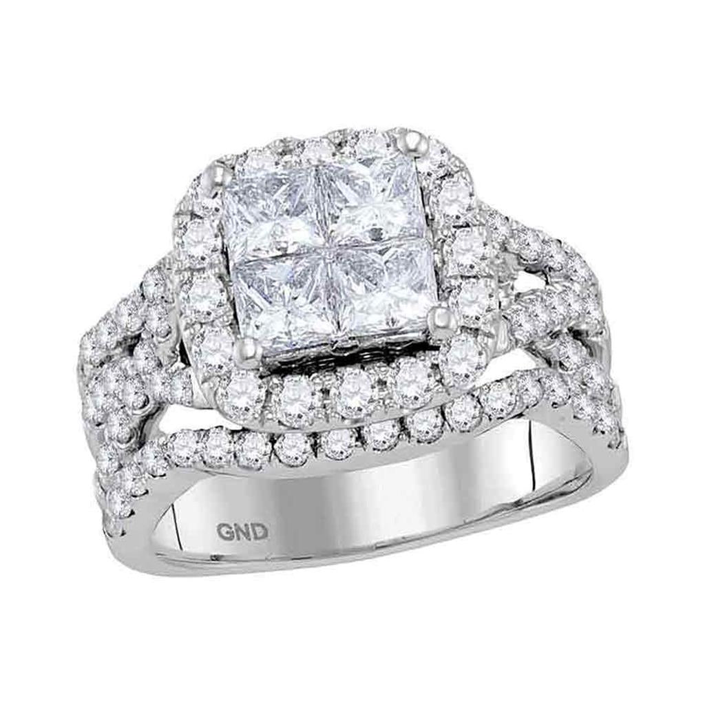 14k White Gold Princess Diamond Cluster Bridal Engagement Ring 2-1/2 Cttw