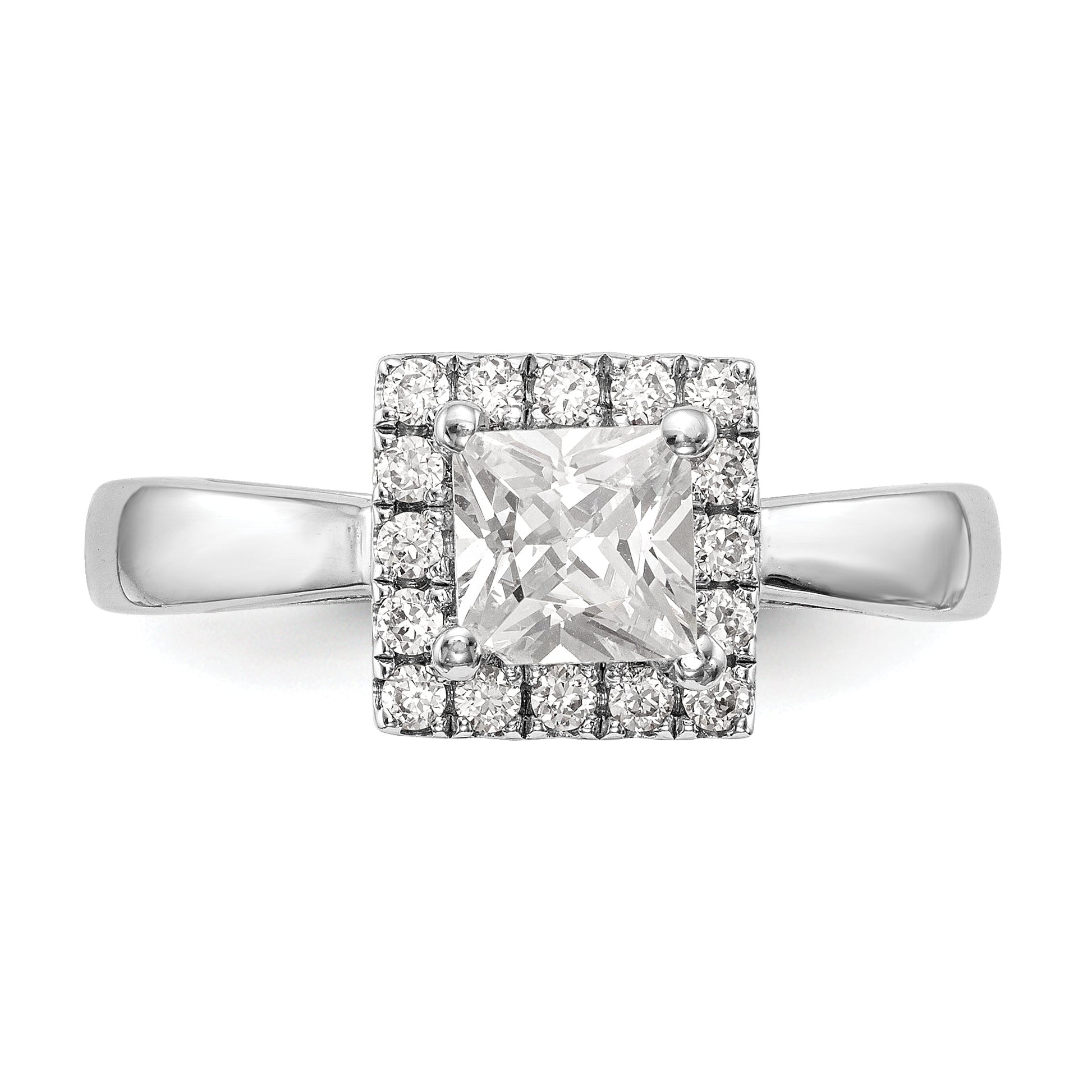 14k White Gold Princess Halo Simulated Diamond Engagement Ring
