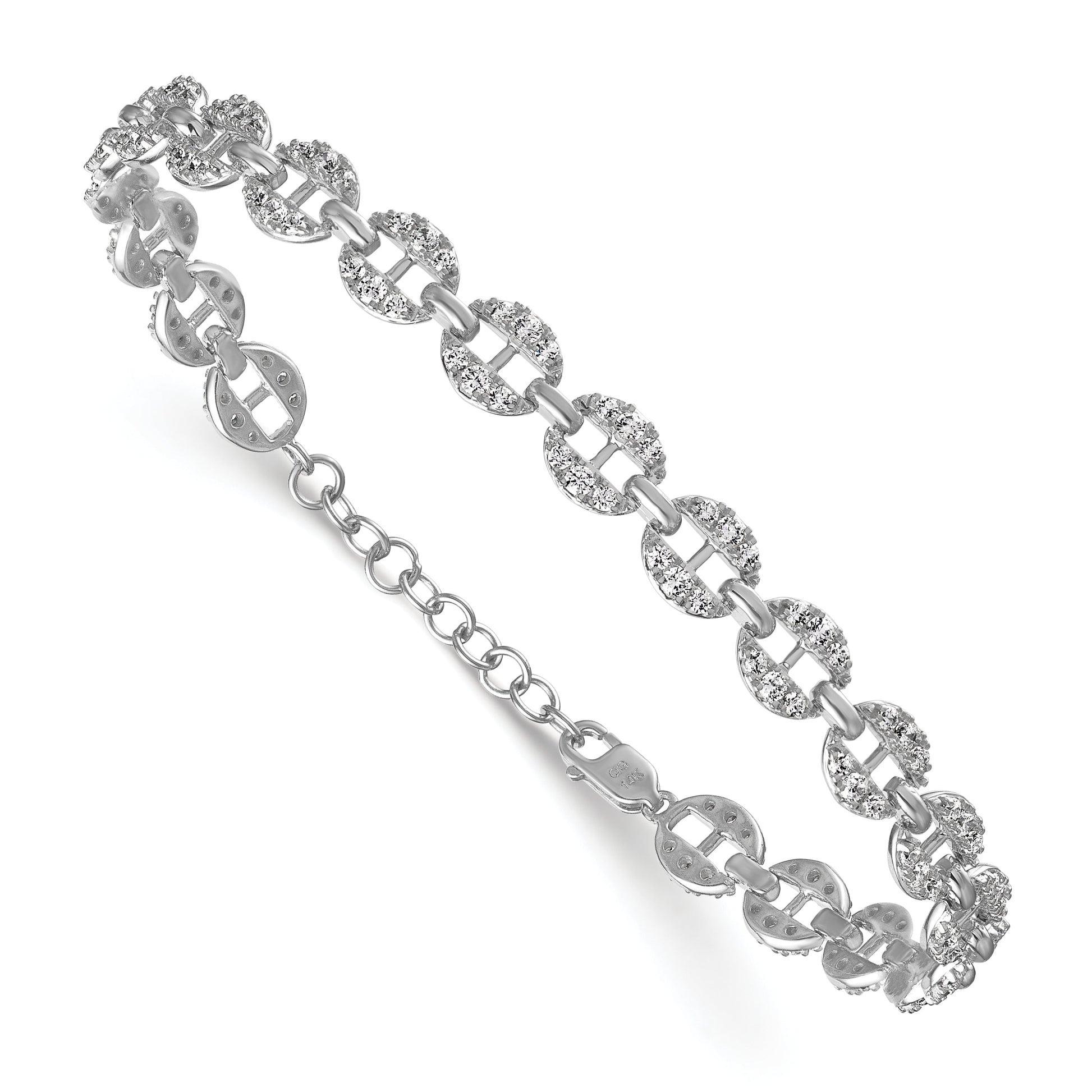 The 14K White Gold True Origin 1 7/8 Carat Lab Grown Diamond Vs Def 7 Inch Anchor Link Bracelet offers a sleek and stylish look for women. Crafted from polished 14K white gold, it features 42 lab-grown diamonds weighing 0.02 carats each, with a total weight of 1.7 carats. The diamonds are clear, with VS+ clarity, and shaped in perfect rounds. The bracelet comes with a 1-inch extender, making it easy to wear comfortably. Its solid design and rhodium plating give it durability and shine. This elegant piece, boxed ready for gifting, is perfect for adding a touch of glam to any outfit.