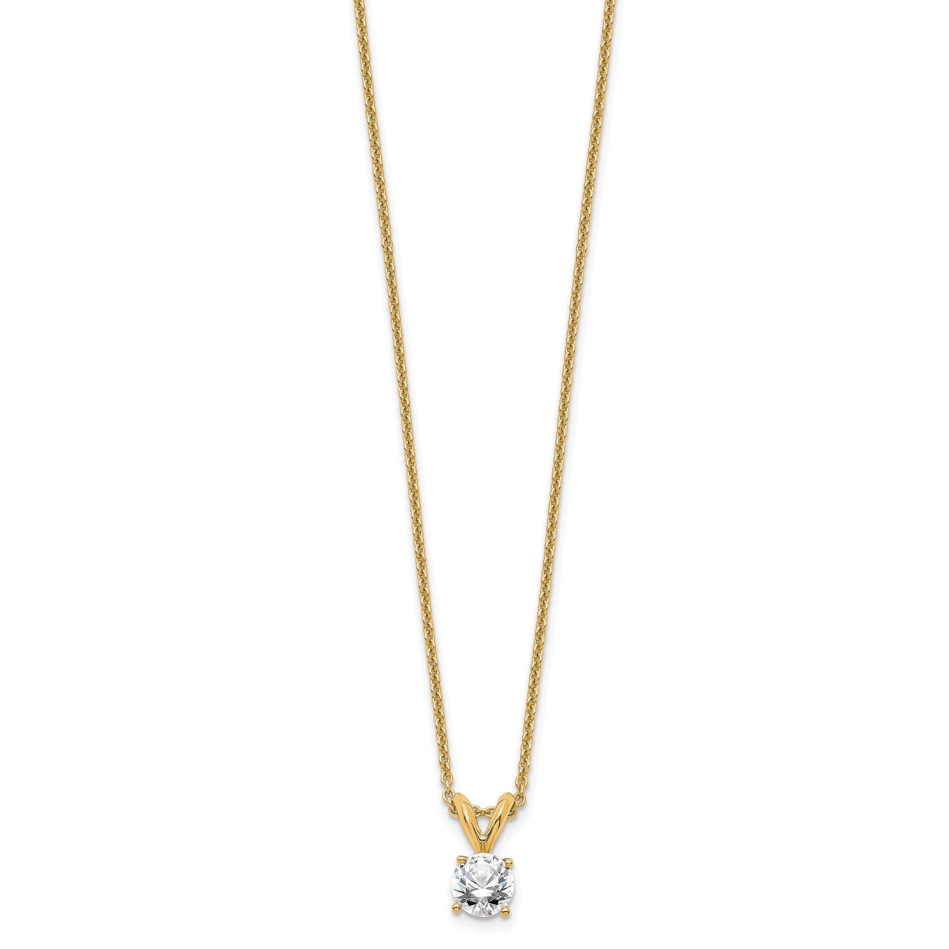 Discover the elegance of the 14K Yellow Gold 1/3 Carat Certified Lab Grown Diamond Vs+ F+ Round Complete Four Prong 18 Inch Solitaire Pendant Necklace. Crafted from polished 14K gold, this piece showcases a stunning lab-grown diamond with VS+ clarity and F+ color, ensuring exceptional sparkle and beauty. The round-cut diamond, weighing 0.37 ct, is securely set in a classic four-prong setting for maximum shine. An 18-inch cable chain adds a sleek touch, making it perfect for everyday wear or special occasions. The complete design highlights quality, style, and eco-conscious gem choice, all in one beautiful necklace.