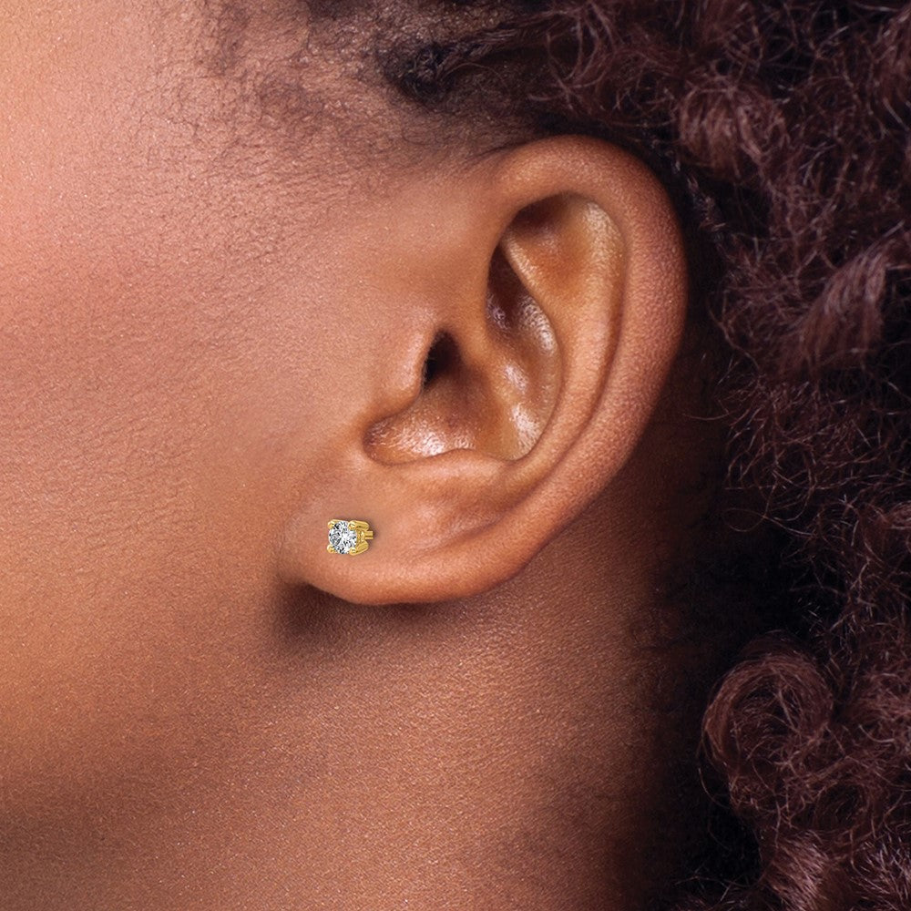 Elevate your look with the 14K Yellow Gold 1/3 Ctw Lab Grown Diamond Vs+ F+ Round 4 Prong Heavy Wt. Stud Earrings. Crafted in polished 14K gold, these stud earrings boast two sparkling lab-grown diamonds that shine with clarity and brilliance. Each stone is securely set with four prongs, offering a solid and durable feel. The round-cut diamonds measure 3.5 mm and feature a bright white F+ color and VS+ clarity. These elegant earrings come boxed, perfect for gifting or personal use. Celebrate timeless style with the beautiful 14K Yellow Gold 1/3 Ctw Lab Grown Diamond Vs+ F+ Round 4 Prong Heavy Wt. Stud Earrings.