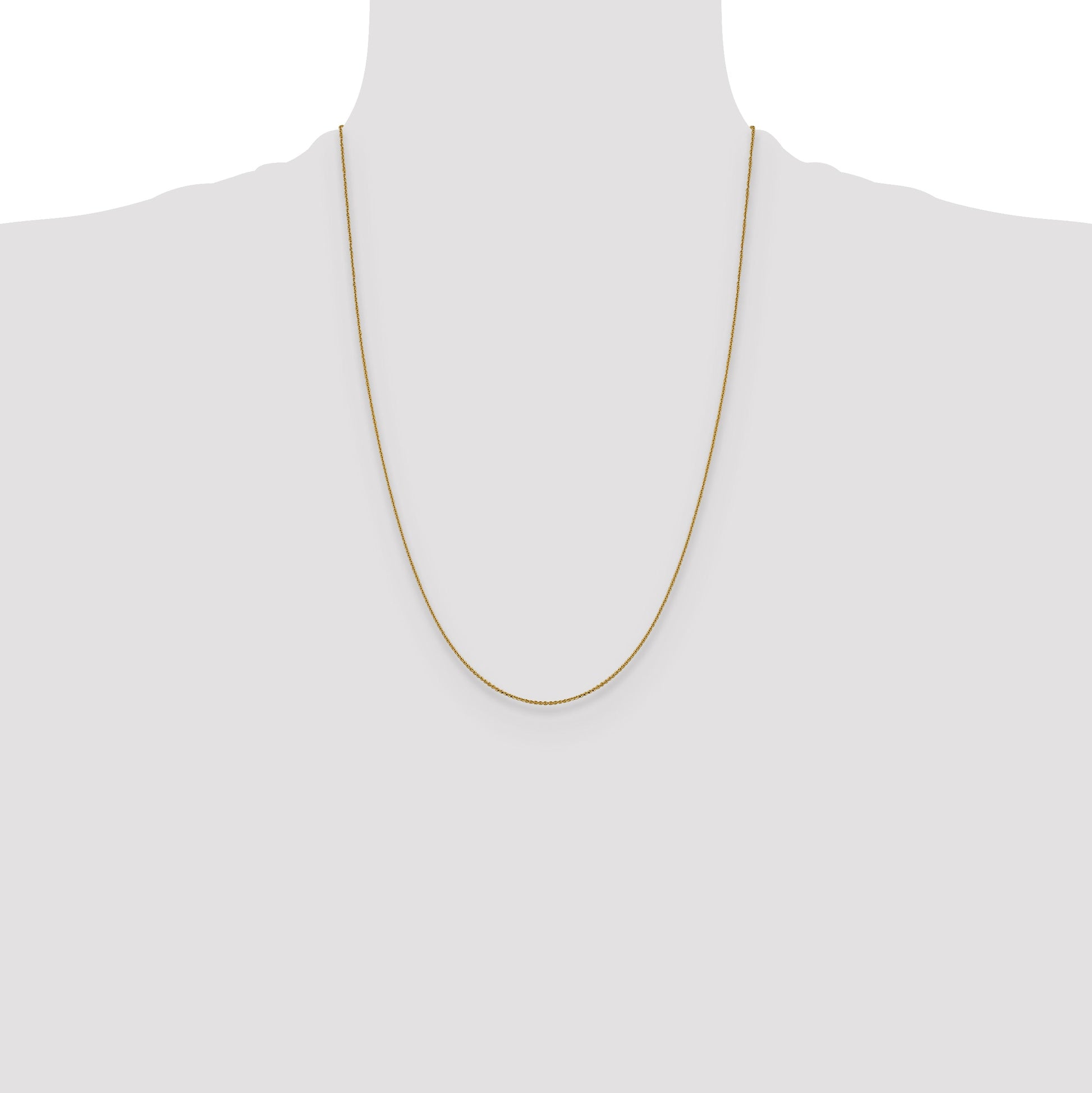 The 14K Yellow Gold 14K 1.0 mm D/C Cable Chain is a sleek and durable necklace perfect for everyday wear. Made from high-quality 14K gold, it features a polished finish that adds a bright shine. The chain measures 24 inches long and just 1 mm wide, making it a subtle yet stylish choice. With a secure lobster clasp, it stays put throughout your day. Its diamond-cut texture gives it a unique look, while the solid design enhances strength. The 14K Yellow Gold 14K 1.0 mm D/C Cable Chain combines classic style with lasting quality, making it a great addition to any jewelry collection.