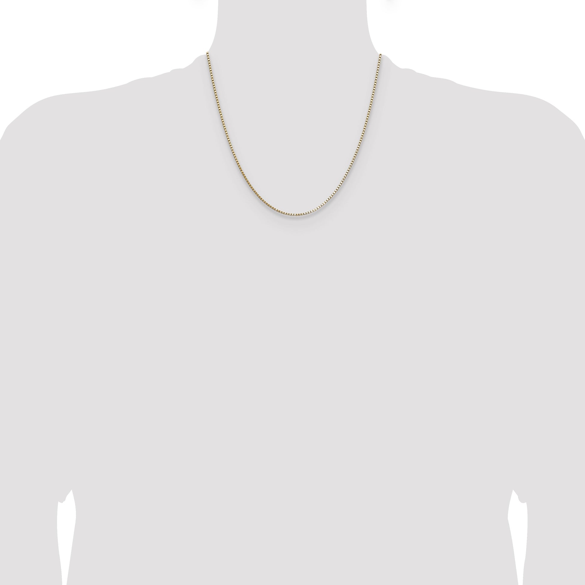 Introducing the 14K Yellow Gold 14K 1.10mm Box Chain, a sleek and classic necklace perfect for everyday wear. Crafted from solid 14K gold, this chain measures 20 inches long and features a polished finish for a shiny look. Its 1.1mm width makes it lightweight yet durable. The sturdy lobster clasp ensures secure wear, and the machine-made design guarantees quality. This chain adds a touch of elegant simplicity to any outfit and comes with a lifetime warranty. The 14K Yellow Gold 14K 1.10mm Box Chain is a timeless piece that blends style and strength.