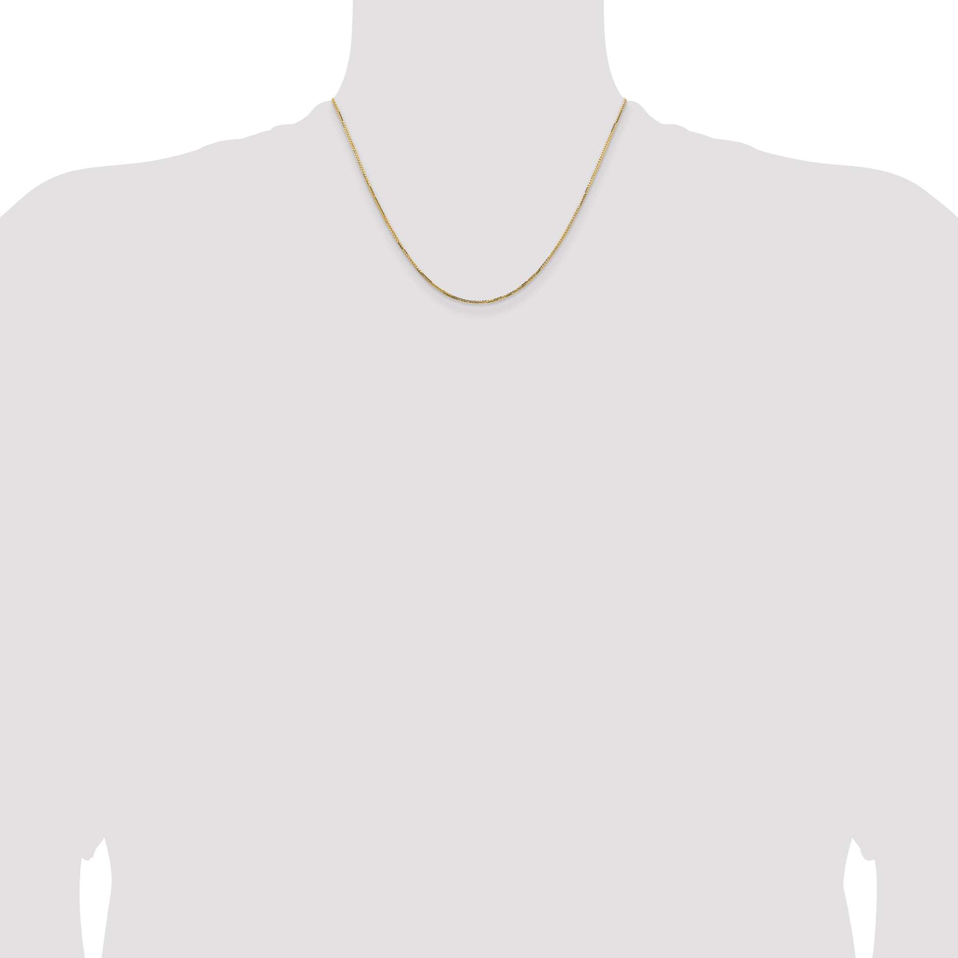 The 14K Yellow Gold 14K 1.10mm Concave Box Chain is a sleek and shiny accessory that adds a touch of class to any outfit. Made from genuine 14K gold, this necklace features a smooth polished finish and a modern concave profile. Its 18-inch length makes it perfect for everyday wear or layering with other jewelry. The solid box chain is durable and designed to last a lifetime. With a secure lobster clasp, the chain stays put and adds a subtle shine. The 14K Yellow Gold 14K 1.10mm Concave Box Chain is a timeless piece that combines elegance with strength.