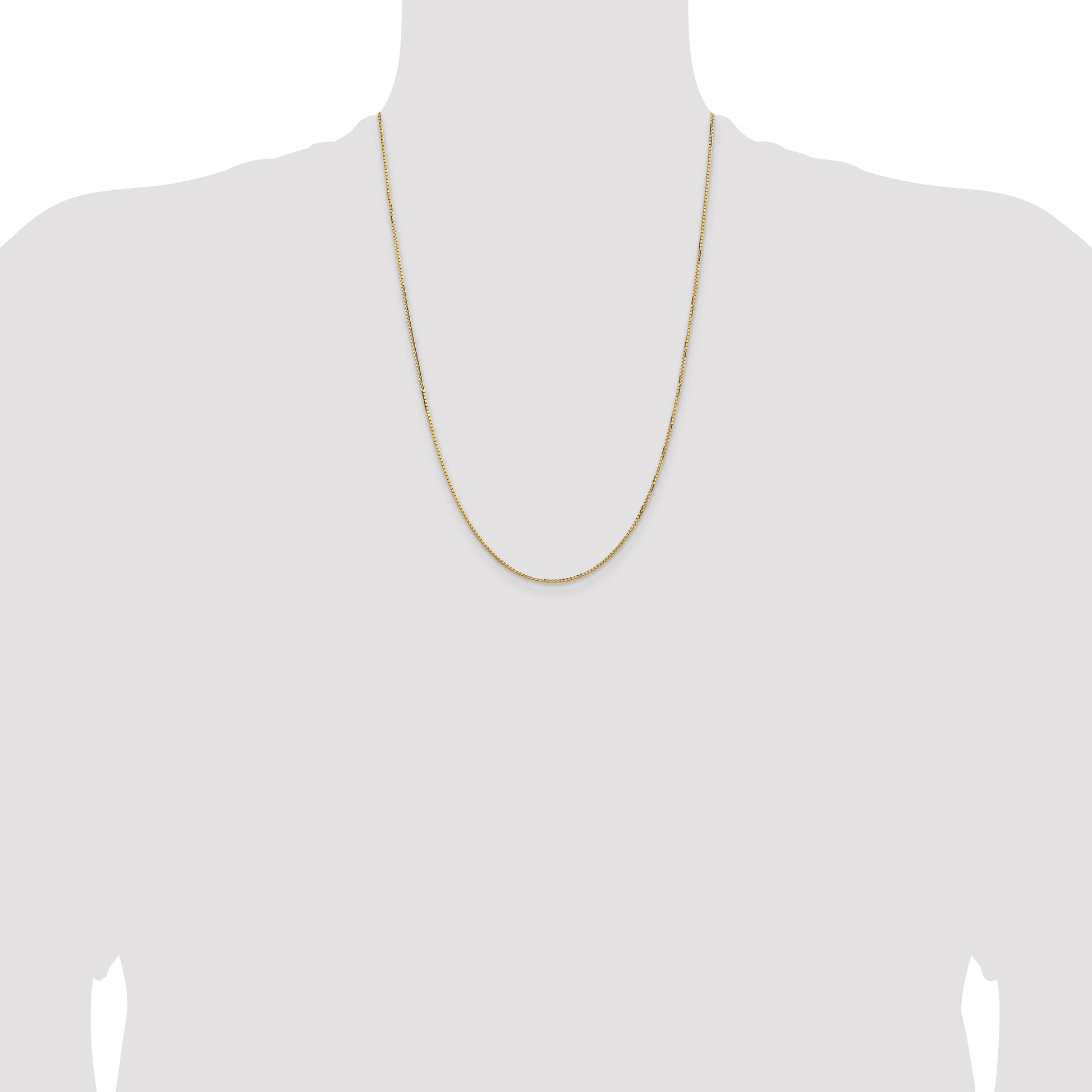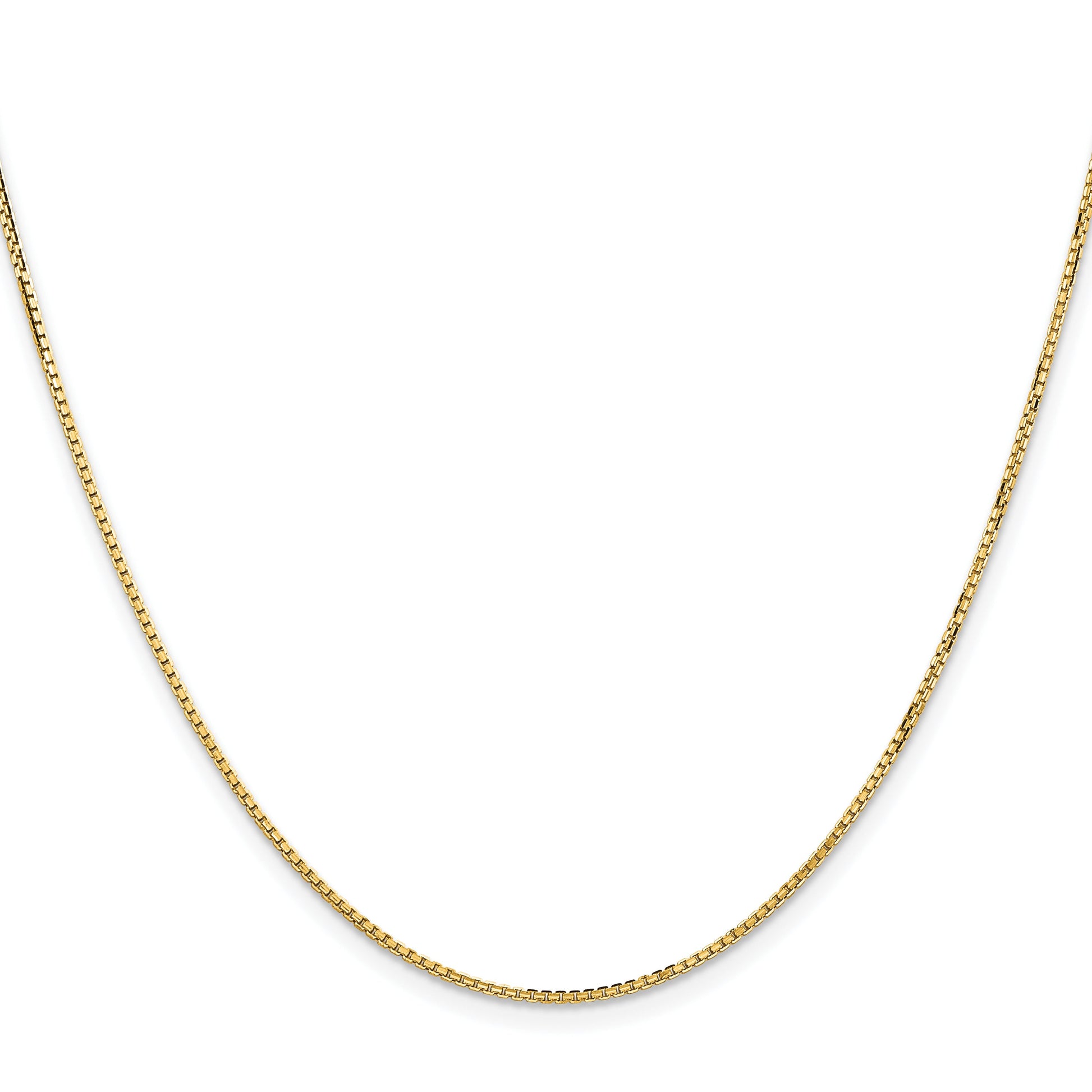 The 14K Yellow Gold 14K 1.3mm Concave Box Chain is a sleek and stylish necklace that adds a touch of class to any look. Made with high-quality 14K gold, this chain measures 24 inches and features a smooth, polished finish. Its unique concave box design creates a modern look while the sturdy lobster clasp ensures secure wear. Perfect for everyday or special occasions, the 14K Yellow Gold 14K 1.3mm Concave Box Chain is built to last, backed by a lifetime guarantee. Show off your style with this timeless chain that combines durability and elegance in one piece.