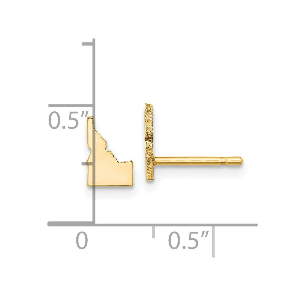 Introducing the 14K Yellow Gold Idaho State Earrings, a charming piece that highlights the beauty of your love for Idaho. Crafted from pure 14K gold, these earrings boast a polished finish that catches light beautifully. Measuring just 8.95 mm in length and 6.63 mm wide, they are the perfect size for daily wear. The button design adds a classic touch, while the post and push-back closure keeps them secure and comfortable. These small, stylish earrings make a simple yet elegant statement about your kinship with Idaho. The 14K Yellow Gold Idaho State Earrings are a must-have for anyone who treasures meaningful jewelry.