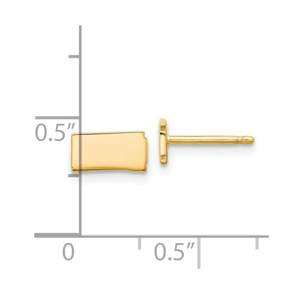 Discover the 14K Yellow Gold North Dakota State Earrings, a charming addition to any jewelry collection. Crafted in polished 14-karat gold, these earrings measure just 4.95 mm in length and 8.19 mm in width, offering a sleek and elegant look. Designed as button earrings for women, they feature a secure post and push-back closure for all-day comfort. These small earrings celebrate North Dakota’s heritage beautifully. The 14K Yellow Gold North Dakota State Earrings are perfect for daily wear or special moments, adding a touch of local pride and timeless style to your jewelry wardrobe.