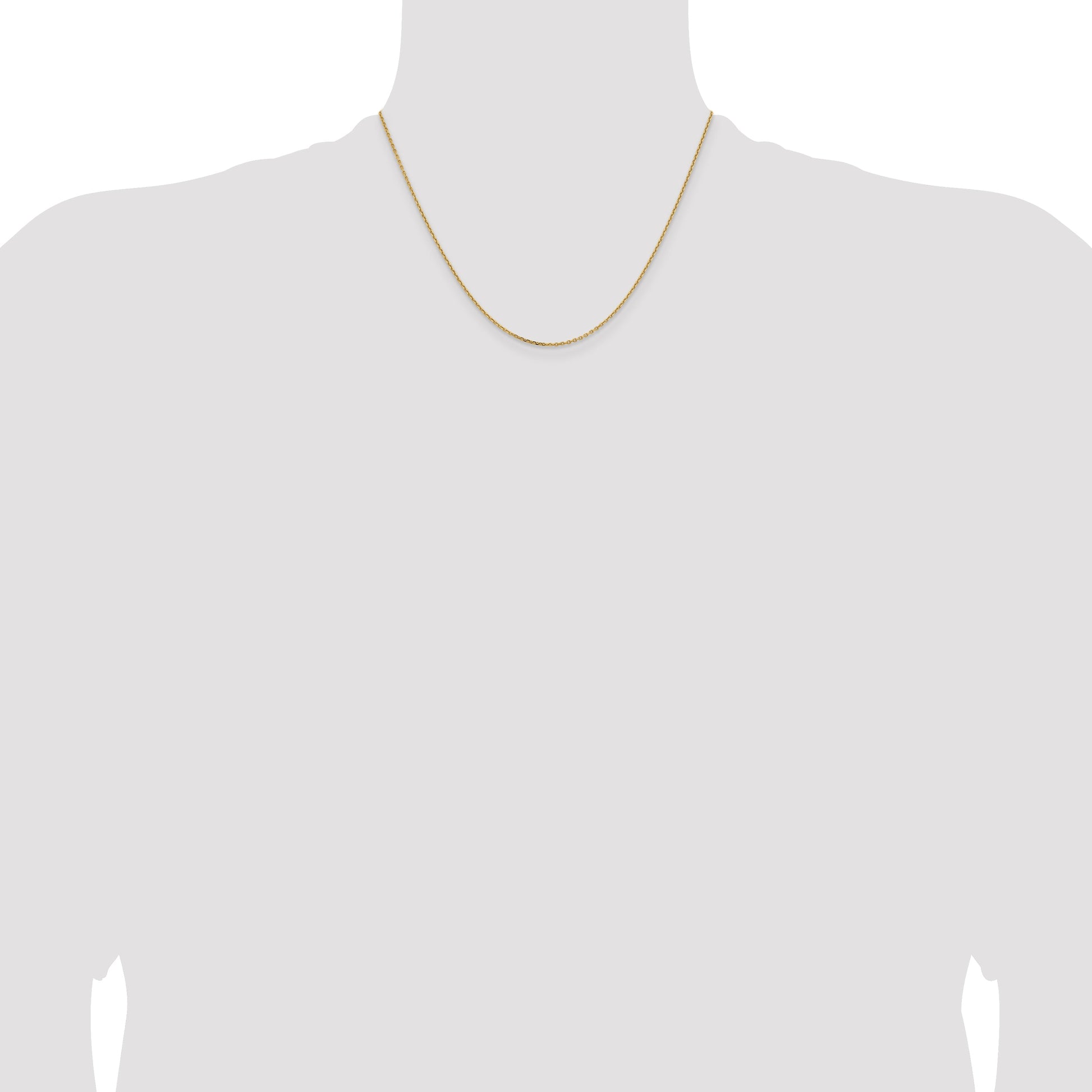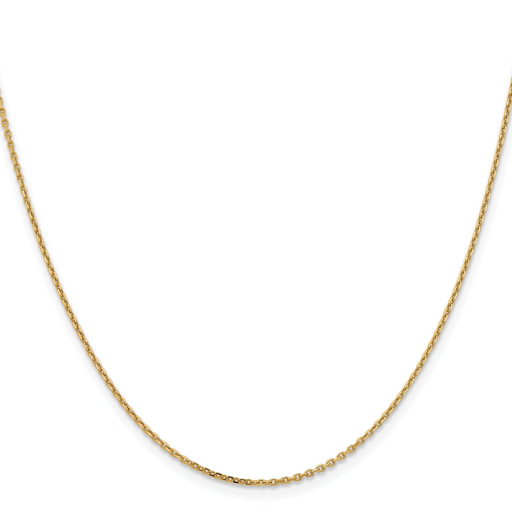 The 14K Yellow Gold 14K 1.4mm D/C Cable Chain is a sleek, timeless necklace that adds just the right touch. Its polished finish gives it a bright shine, perfect for everyday wear or special occasions. The chain measures 18 inches long and features a sturdy lobster clasp to stay secure. Crafted with precision, this machine-made cable chain boasts a smooth, diamond-cut texture that catches the light beautifully. Known for quality and style, the 14K Yellow Gold 14K 1.4mm D/C Cable Chain is built to last and comes with a lifetime guarantee.