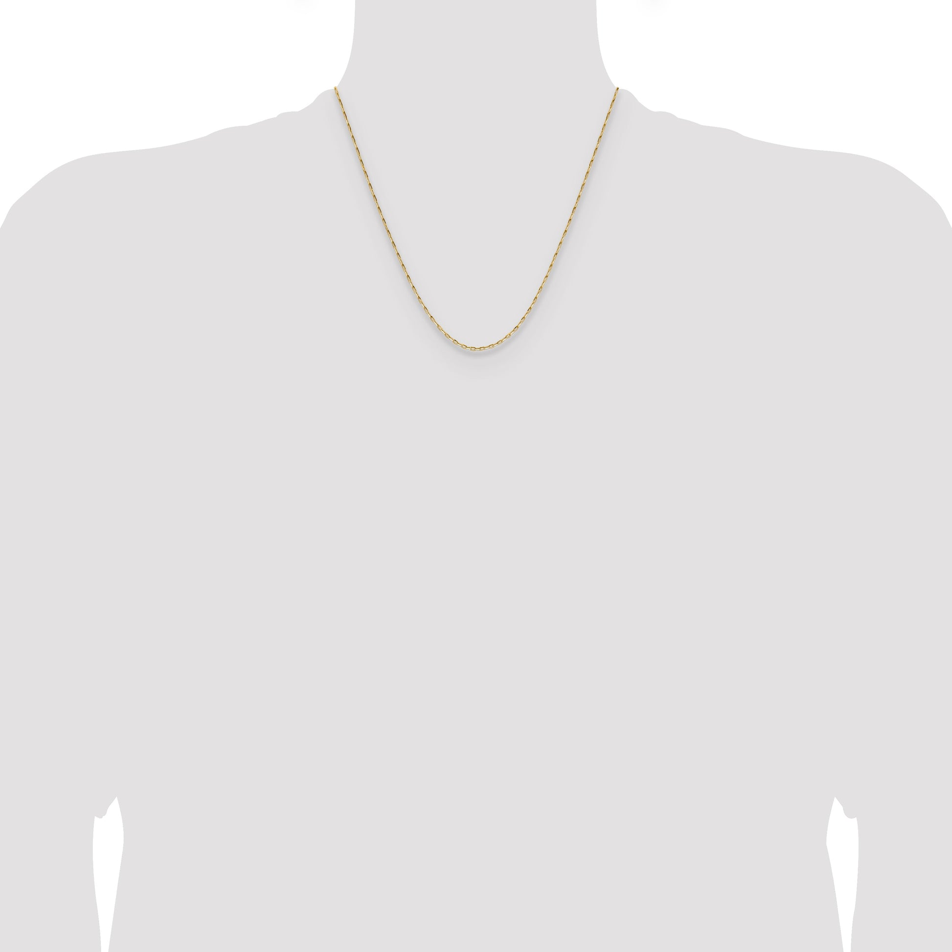 The 14K Yellow Gold 14K 1.4mm D/C Open Long Link Cable Chain is a sleek piece that adds a touch of elegance to any look. Crafted from solid 14K gold, this chain measures 20 inches long with a diamond-cut finish that makes it stand out. Its open long link design offers a modern feel, while the lobster clasp ensures secure wear. Perfect for layering or wearing alone, the necklace features a durable wire-formed construction backed by a lifetime guarantee. The bright yellow hue of the 14K gold makes the 14K Yellow Gold 14K 1.4mm D/C Open Long Link Cable Chain a versatile choice that elevates your style effortlessly.