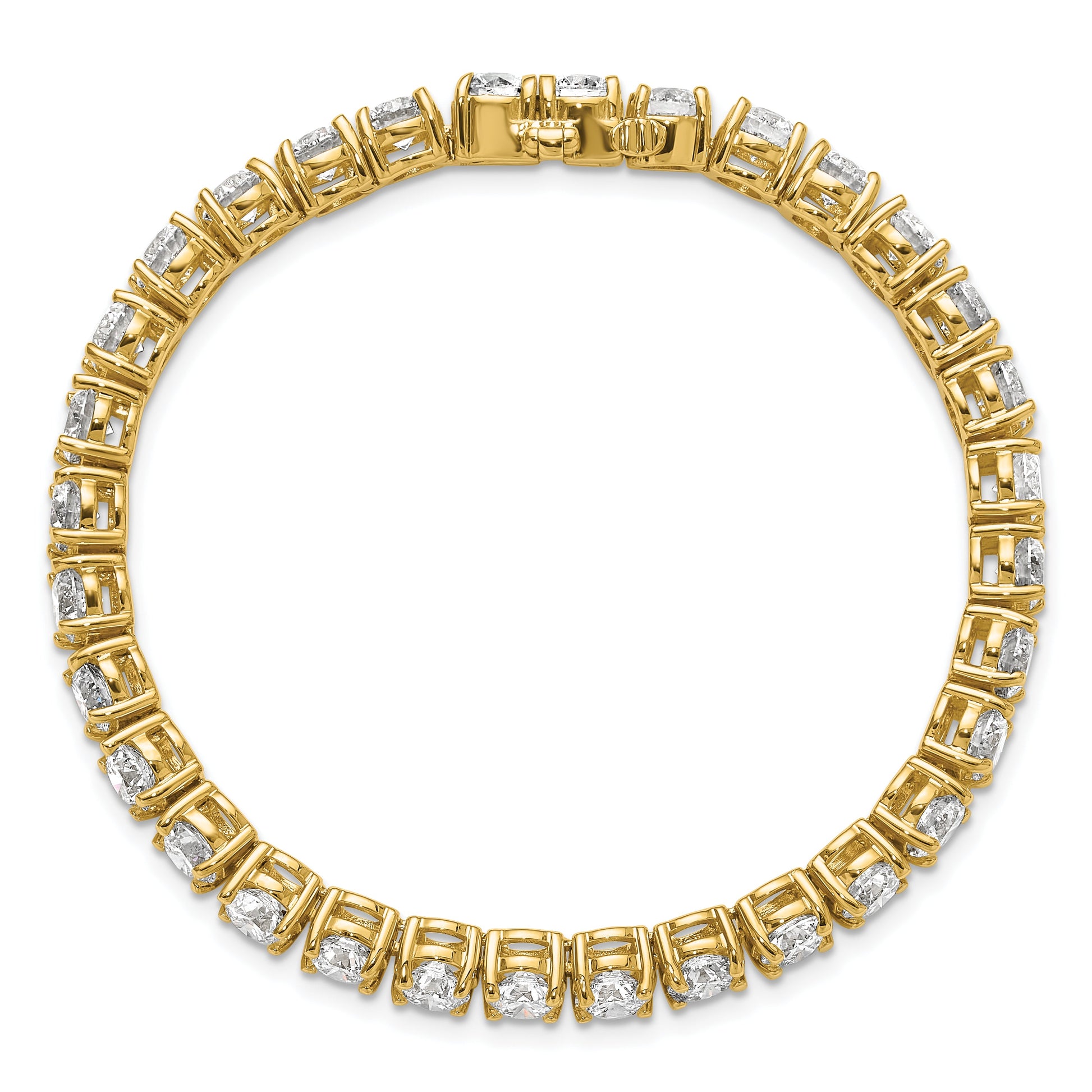 The 14K Yellow Gold 16 Carat Lab Grown Diamond Vs+ F+ Complete Tennis Bracelet is a true showstopper. It features 32 stunning round lab-grown diamonds, each with a VS+ clarity and F+ color grade, set in a polished 14K yellow gold band. The bracelet measures 7 inches with a sleek width of 5.8 mm and is secured with a box catch clasp. Crafted with solid quality and precision casting, this tennis bracelet adds a bright touch of elegance to any look. Whether for yourself or as a gift, the 14K Yellow Gold 16 Carat Lab Grown Diamond Vs+ F+ Complete Tennis Bracelet promises lasting sparkle and style.