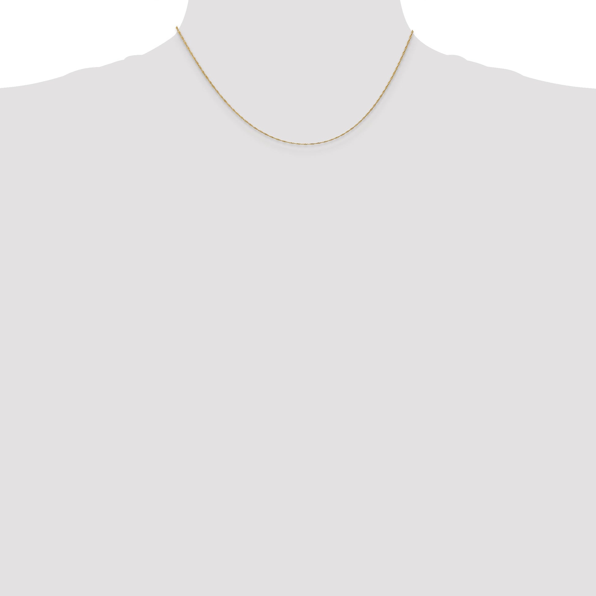 Elevate your style with this 14K Yellow Gold 16 Inch Singapore Chain. This fine necklace offers a polished finish, featuring a 1mm wide chain that's both elegant and durable. Expertly crafted through a casting and machine-making process, it ensures top-notch quality and promises lasting beauty. This chain design is smooth and flexible, making it the perfect choice for everyday wear or special occasions. The secure spring ring clasp guarantees it stays fastened all day. Add this 14K Yellow Gold chain to your collection and exude timeless elegance.