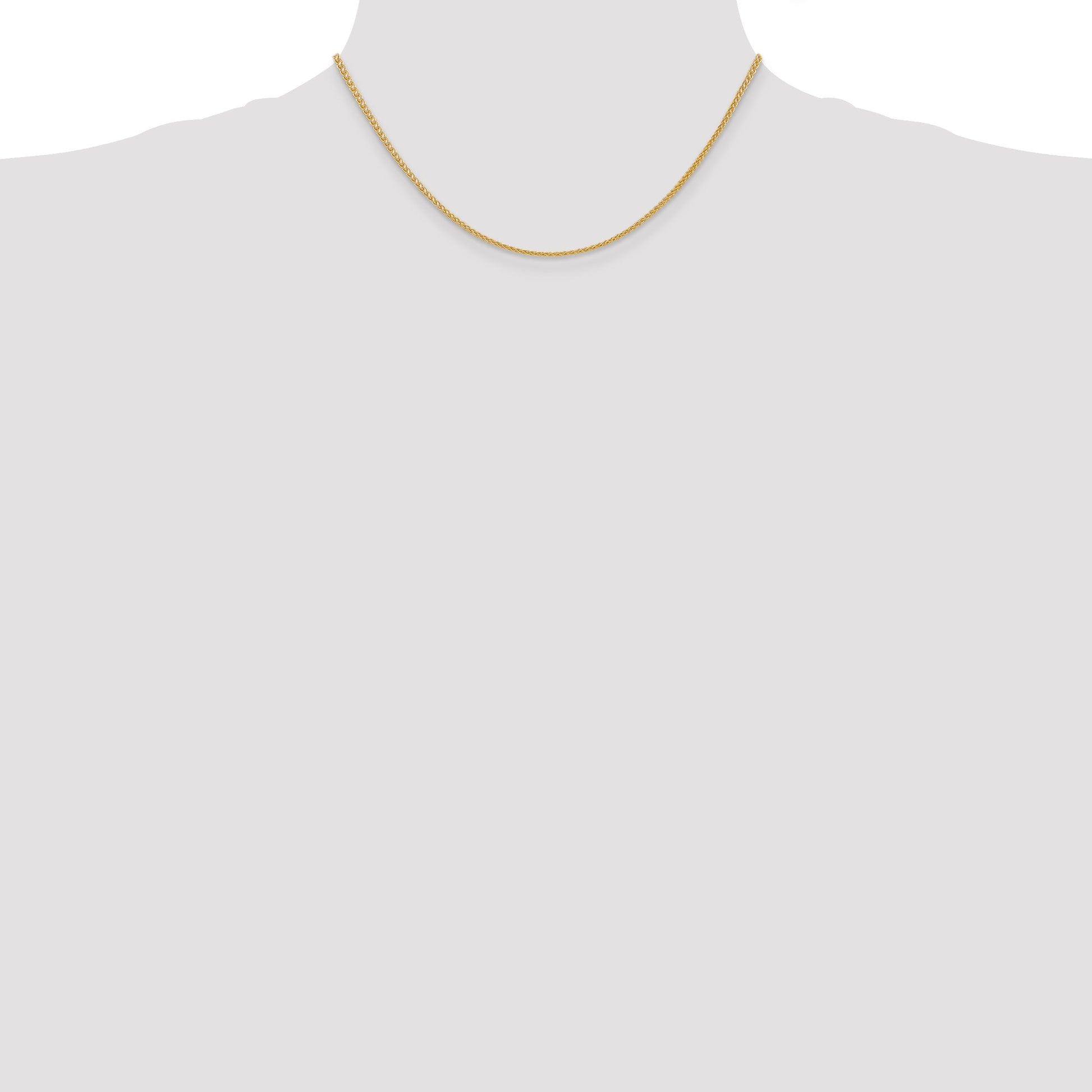 The 14K Yellow Gold 16 Inch 2mm Semi-Solid Wheat Chain exudes elegance and charm. Crafted from luxurious 14K gold, this polished necklace features a 16-inch length and a 2mm width. The intricate wheat pattern adds a unique flair, while the semi-solid design ensures durability. Equipped with a secure lobster clasp, it offers both style and functionality. Perfect for any occasion, the 14K Yellow Gold 16 Inch 2mm Semi-Solid Wheat Chain is a timeless addition to your jewelry collection.