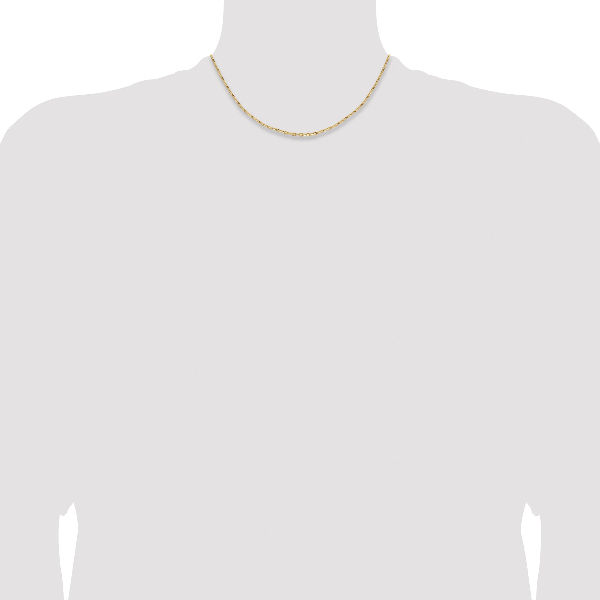 The 14K Yellow Gold 14K 1.75mm D/C Open Long Link Cable Chain is a sleek and stylish addition to any jewelry collection. Crafted from solid 14K gold, this necklace features a polished finish and a durable lobster clasp. The open link design gives it a classic look, perfect for everyday wear or layering. With a length of 16 inches and a 1.75mm width, it offers a comfortable fit that lays nicely on the neck. The diamond-cut texture adds a subtle sparkle, making the 14K Yellow Gold 14K 1.75mm D/C Open Long Link Cable Chain a perfect choice for all styles.