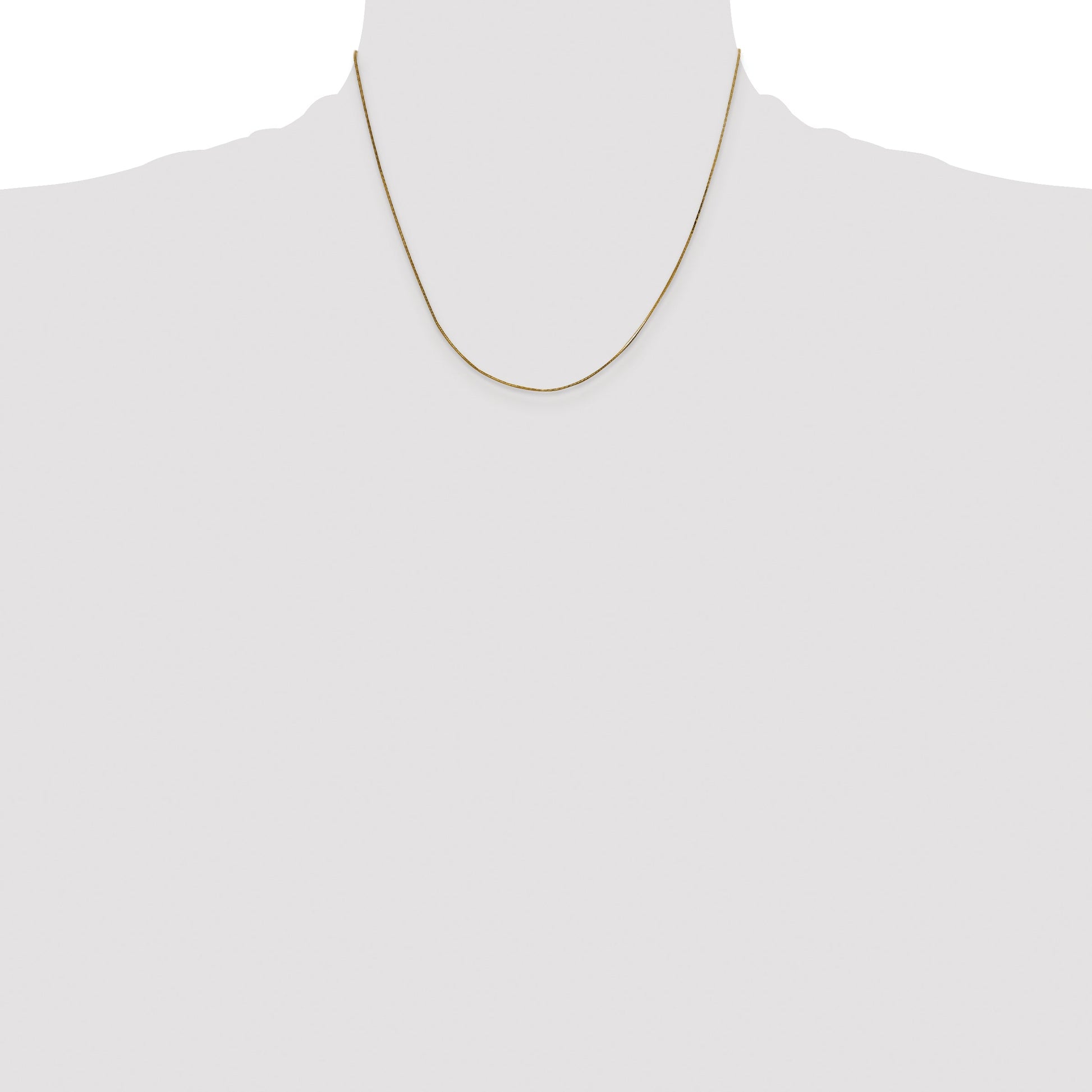 The 14K Yellow Gold 18-Inch 0.5mm Octagonal Snake Chain is an exquisite accessory for any jewelry collection. Crafted from high-quality 14K yellow gold, this polished chain shines with a radiant finish. Its delicate 18-inch length drapes elegantly, while the octagonal snake design offers a unique twist to a classic style. At 0.5mm wide, the chain feels lightweight yet durable, with a solid structure thanks to its precise extruded and die-struck manufacturing. The secure lobster clasp ensures it stays in place. Add a timeless touch to your ensemble with the 14K Yellow Gold 18-Inch 0.5mm Octagonal Snake Chain.
