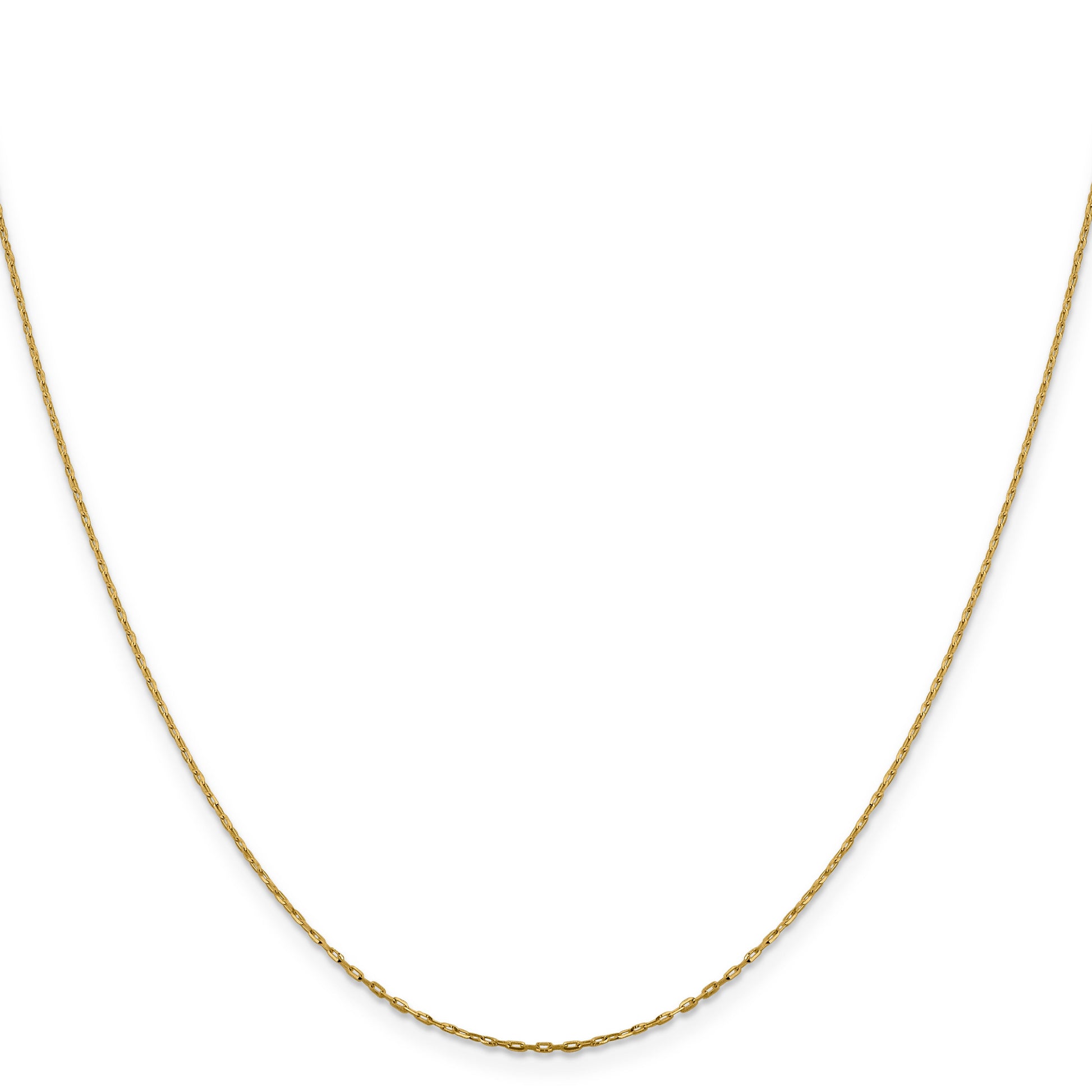 Discover the 14K Yellow Gold 14K 1mm D/C Open Long Link Cable Chain, a sleek and stylish necklace that adds charm to any look. Crafted from solid 14-karat gold, it features a polished finish and a diamond-cut texture that catches the light beautifully. The chain measures 24 inches long with a delicate 1mm width, making it perfect for layering or wearing alone. Its lobster clasp ensures a secure fit, and the durable design guarantees long-lasting wear. The 14K Yellow Gold 14K 1mm D/C Open Long Link Cable Chain blends quality and style comfortably, making it a must-have for your jewelry collection.