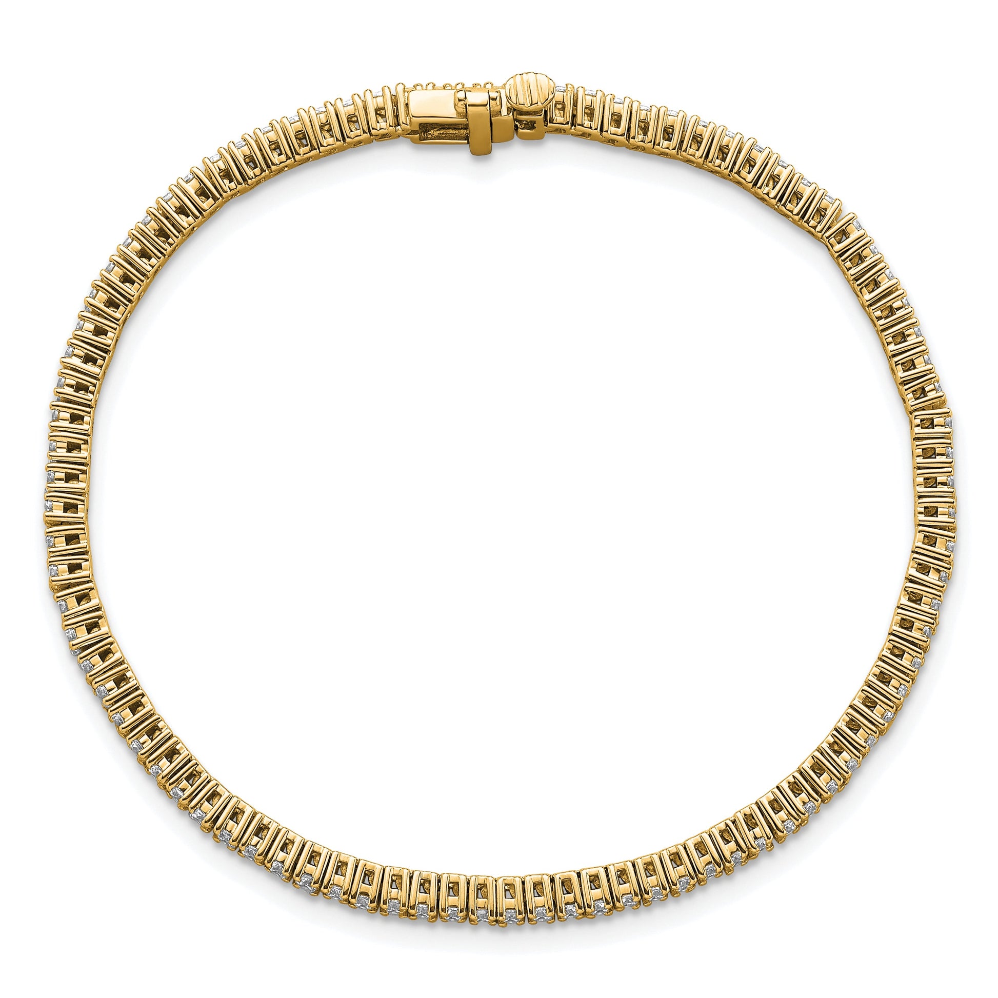 Introducing the 14K Yellow Gold 2 Carat Lab Grown Diamond Vs/Si+ G+ Complete Tennis Bracelet. This stunning piece features 40 and 50 lab-grown diamonds that sparkle bright with a VS+ clarity and F+ color grade. The polished 14K yellow gold adds warmth and durability, making it perfect for everyday wear or special moments. The bracelet measures 7 inches long and has a sleek 2mm width, secured with a sturdy box catch clasp. Designed with faceted round stones, it delivers a radiant shine that commands attention. Elevate your style with the elegance of the 14K Yellow Gold 2 Carat Lab Grown Diamond Tennis Bracelet today.