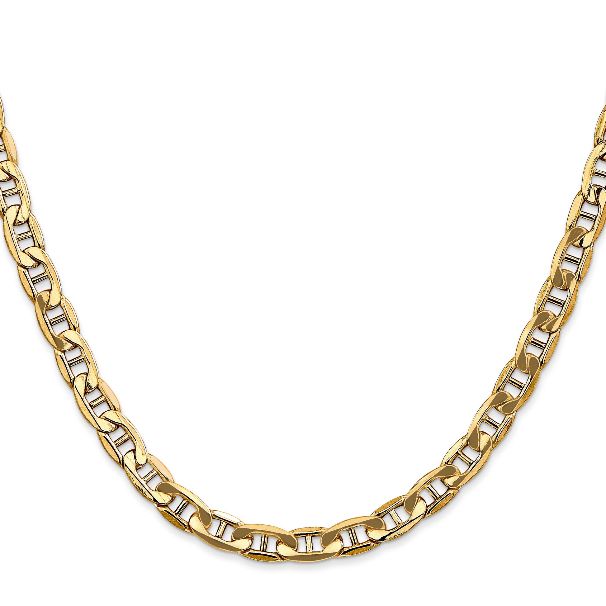 Introducing our 14K Yellow Gold 22 Inch 5.5mm Semi-Solid Anchor Chain, perfect for those who appreciate timeless elegance. Crafted from polished 14K gold, this chain showcases a 22-inch length to drape beautifully. Its 5.5mm width adds a touch of bold sophistication, making it a standout piece. The anchor design is semi-solid, offering durability without extra weight. A lobster clasp ensures secure wear. Machine-made to perfection, this men's chain is an essential addition to any jewelry collection. Elevate your style with the 14K Yellow Gold 22 Inch 5.5mm Semi-Solid Anchor Chain.