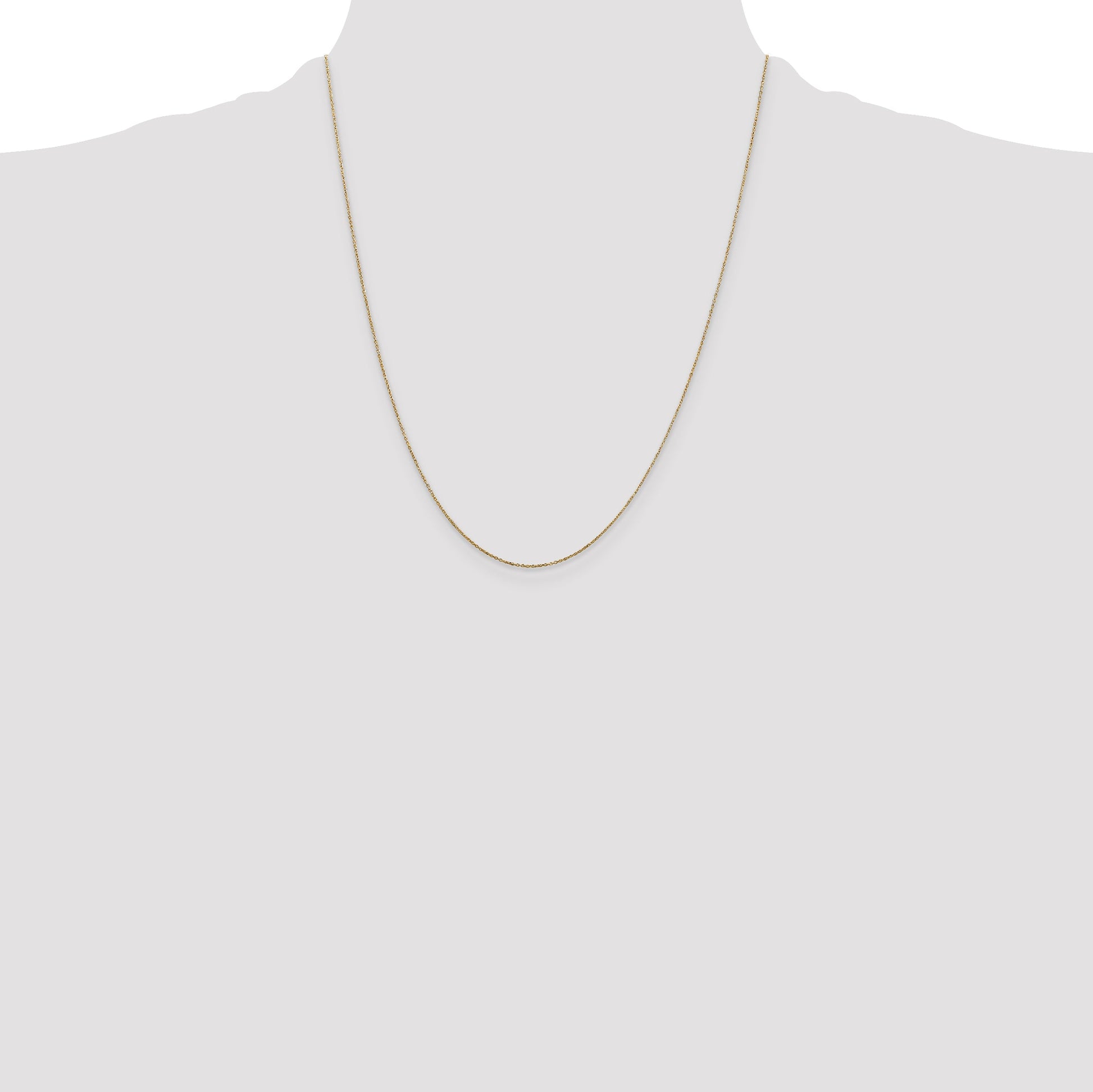 Elevate your elegance with our 14K Yellow Gold 22-Inch Cable Chain. This refined chain, crafted with precision from 14K yellow gold, measures a delicate 0.6mm in width. Its polished finish and diamond-cut open links add a sleek sparkle to any neckline. The 22-inch length drapes perfectly, whether worn solo or with a pendant. Expertly cast and machine-made, this chain ensures both durability and glamour. A spring ring clasp secures it in place, making it an ideal choice for everyday wear. Discover the charm of this striking 14K Yellow Gold Cable Chain today.