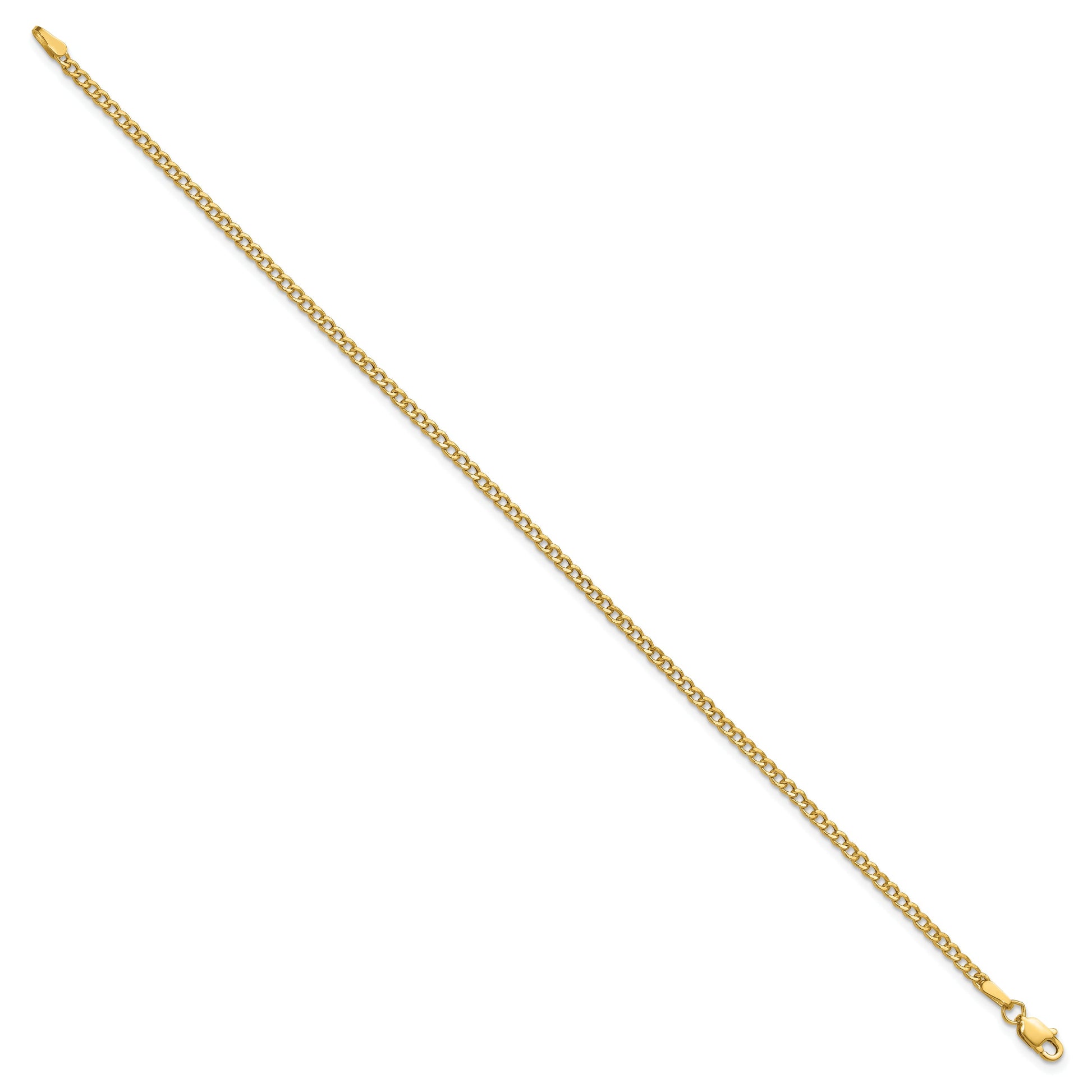 The 14K Yellow Gold 2.5mm Semi-Solid Curb Chain is a sleek and durable piece perfect for everyday wear. Made with pure, polished 14K gold, it offers a rich shine that catches the eye. With a length of 7 inches, the chain is designed for comfort and style. Its curb link style adds a classic touch, while the lobster clasp makes it easy to put on or take off. This chain works well alone or layered with other jewelry. The 14K Yellow Gold 2.5mm Semi-Solid Curb Chain is a timeless piece that adds elegance to any look and comes with a lifetime guarantee.