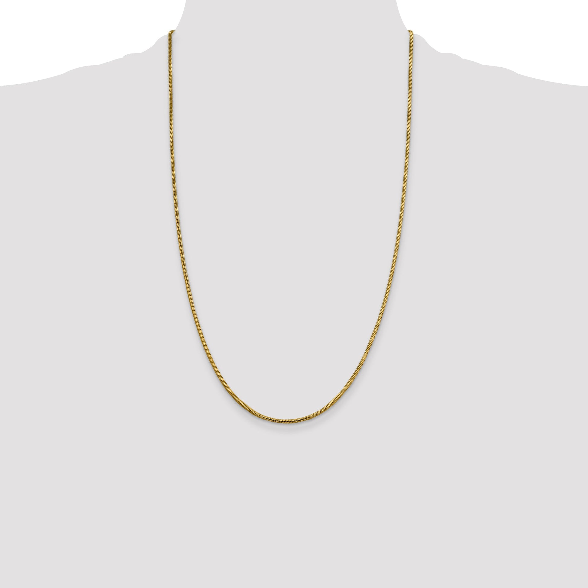 14K Yellow Gold 26 Inch 1.85mm Round Snake Lobster Clasp Chain Necklace