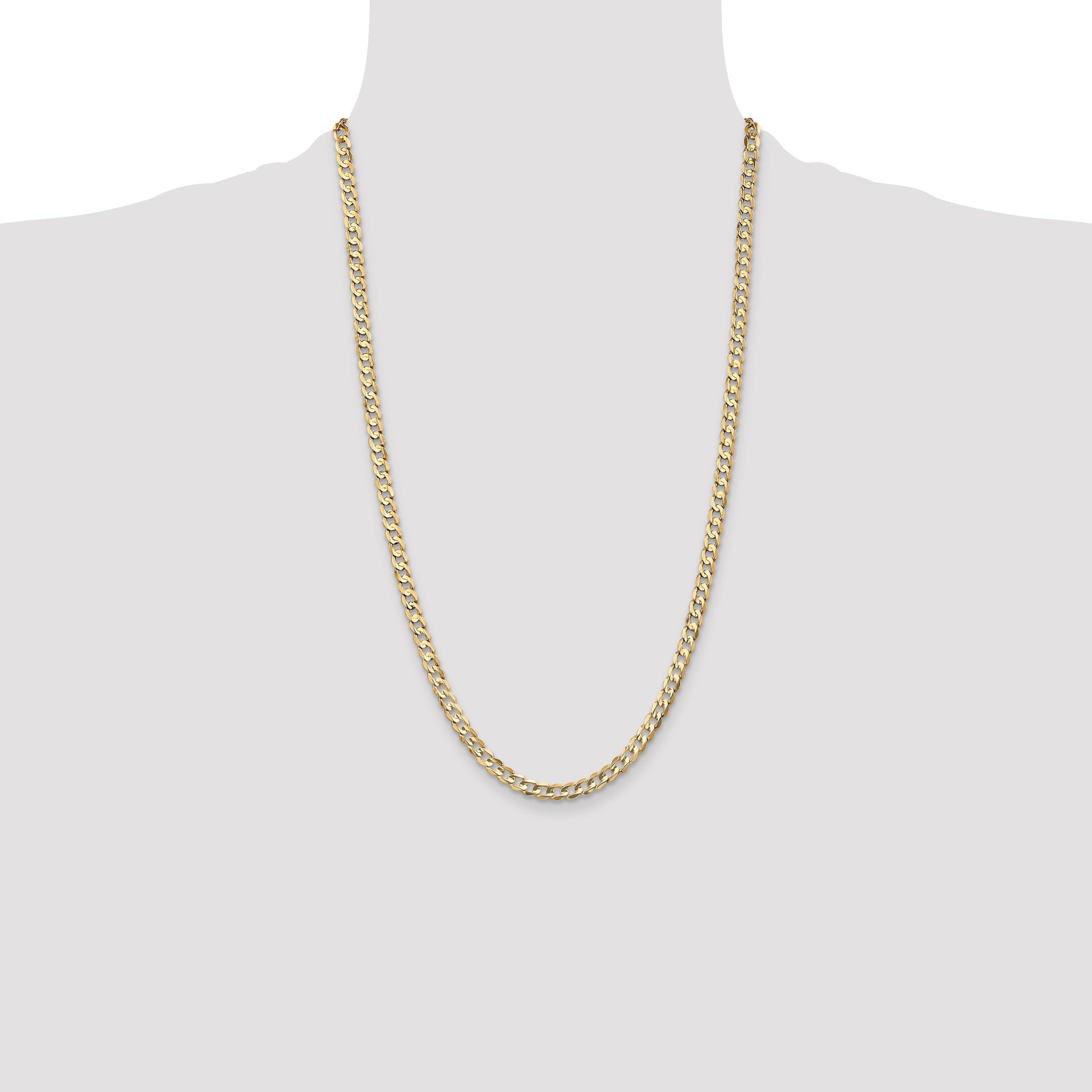The 14K Yellow Gold 26 Inch 4.5mm Open Concave Curb Chain blends timeless style with everyday elegance. Crafted from 14K gold, its lush yellow polish adds warmth to any ensemble. Measuring 26 inches, the chain provides a perfect drape for both men and women, showcasing a 4.5mm width that offers noticeable yet refined presence. The sturdy lobster clasp ensures it stays secure around your neck. Made through precision casting and machine processes, this solid piece of jewelry guarantees durability. Elevate your accessory game with the 14K Yellow Gold 26 Inch Open Concave Curb Chain.