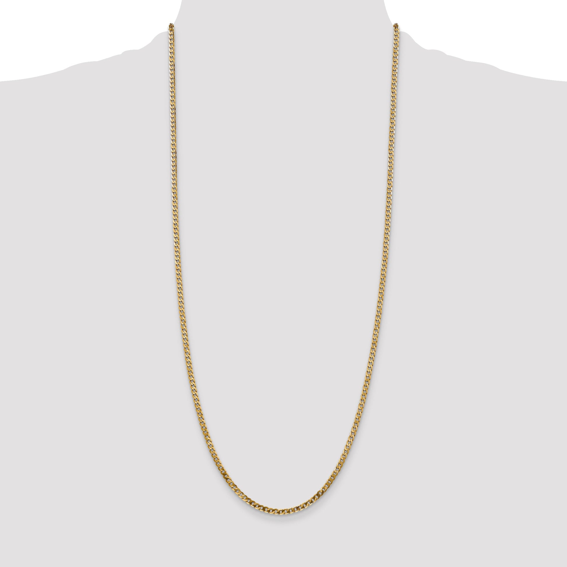 Elevate your style with our exquisite 14K Yellow Gold 30 Inch 2.9mm Flat Beveled Curb Chain. Gleaming with a polished finish, this women's necklace embodies timeless elegance. Crafted from solid 14K gold, the chain boasts a flat profile and beveled edges, adding a touch of sophistication. Its smooth curb design features a wide 2.9mm, perfect for layering or wearing alone. Secured with a reliable lobster clasp, this machine-made piece promises lasting quality. Indulge in the luxury of 14K gold with this beautiful 30-inch chain, a versatile addition to any jewelry collection.