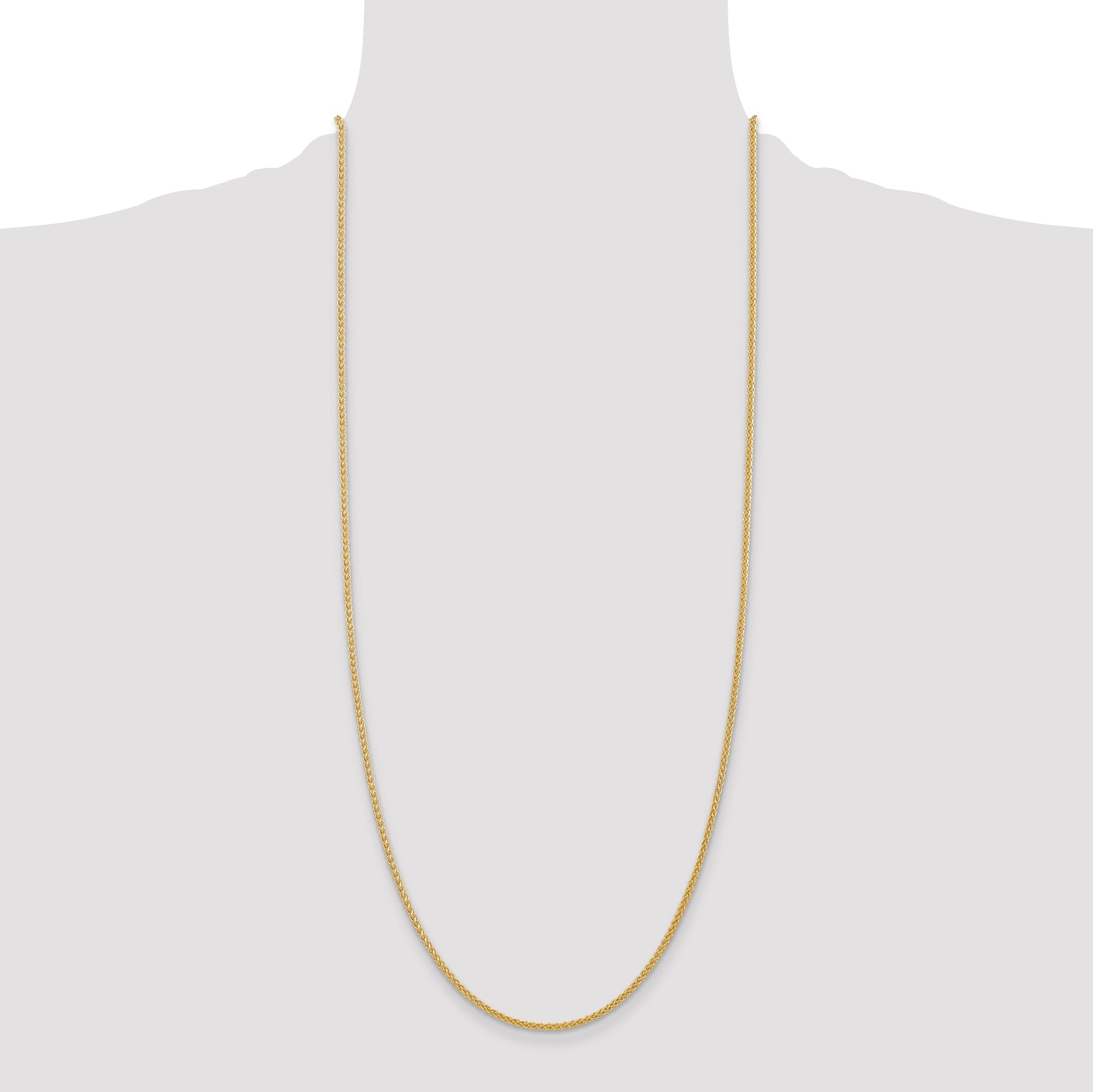 Discover timeless elegance with our 14K Yellow Gold 30 Inch 2mm Semi-Solid Wheat Chain with Lobster Clasp. Crafted from polished 14K gold, this 30-inch necklace showcases a classic wheat design, offering a touch of sophistication to any outfit. The chain, with its 2mm width, strikes the perfect balance between subtlety and presence. Its sturdy lobster clasp ensures secure wear all day long. Ideal for women seeking a refined jewelry piece, the 14K Yellow Gold 30 Inch 2mm Semi-Solid Wheat Chain promises to elevate your style with its graceful charm.