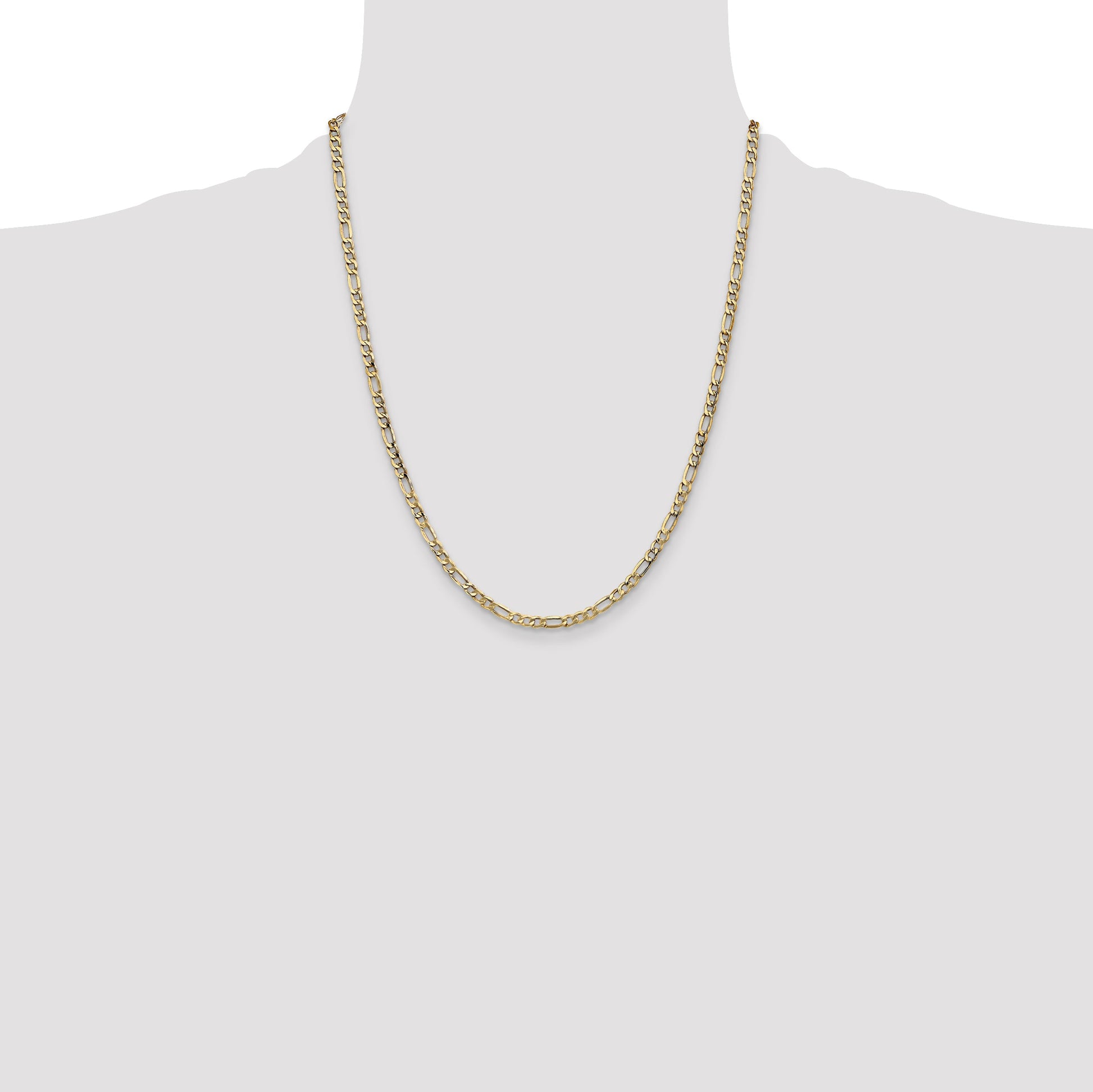 The 14K Yellow Gold 3.5mm Semi-Solid Figaro Chain is a versatile piece perfect for daily wear. Crafted from pure 14K gold with a polished finish, it provides a sleek and shiny look that lasts. Measuring 22 inches long, the chain features a sturdy lobster clasp for a secure fit. The Figaro style adds a classic touch to any outfit, making it your go-to necklace. This chain offers a lifetime guarantee, so you can enjoy its beauty without worry. The 14K Yellow Gold 3.5mm Semi-Solid Figaro Chain is a timeless choice for jewelry lovers.