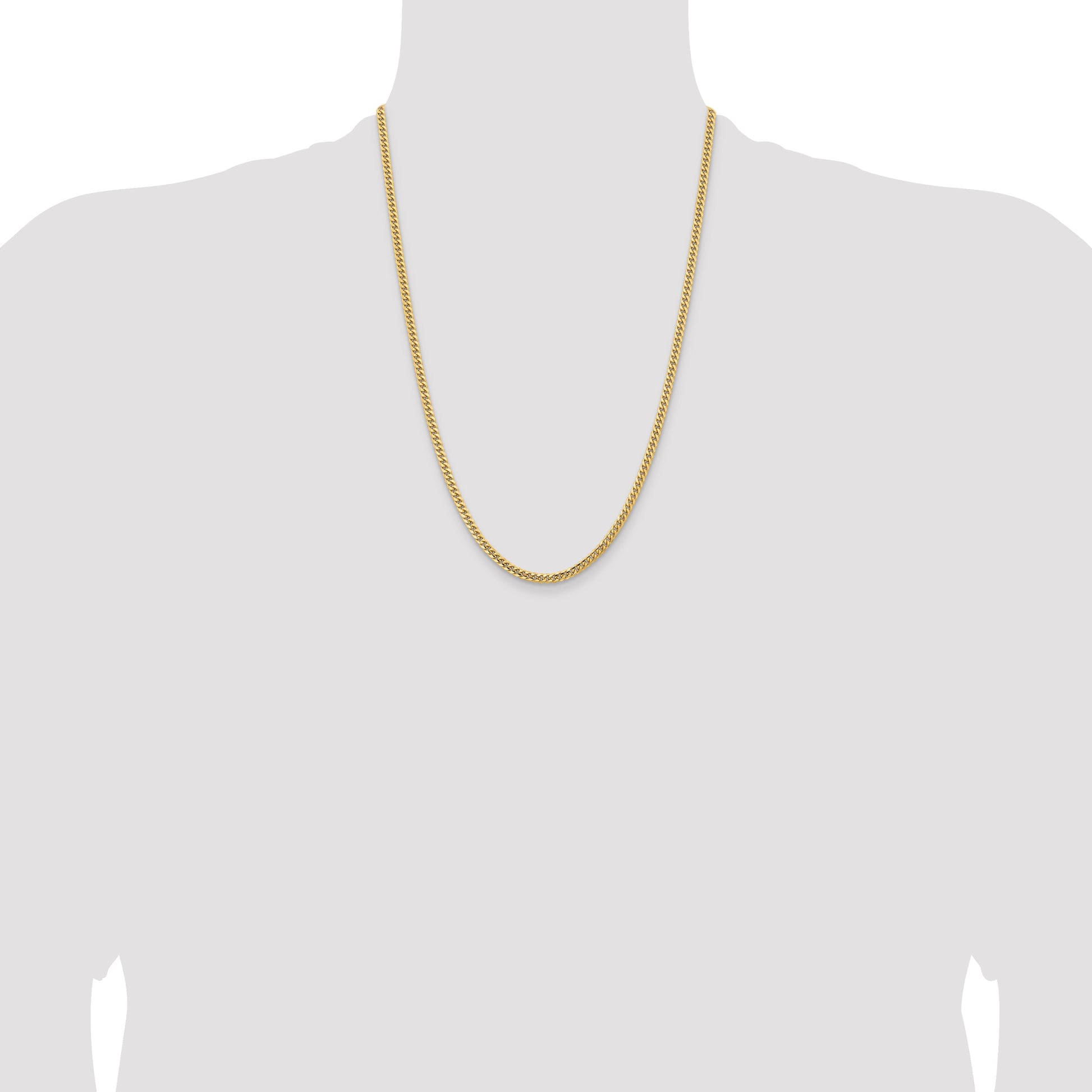 The 14K Yellow Gold 3.5mm Solid Miami Cuban Chain makes a bold statement. Crafted from high-quality gold, this chain features a polished finish that shines bright. Measuring 24 inches long and 3.5mm wide, it sits comfortably around your neck with a sturdy lobster clasp for security. Durable and stylish, the Miami Cuban chain adds a touch of streetwear flair to any look. With a lifetime guarantee, this jewelry piece is built to last and look great every day. The 14K Yellow Gold 3.5mm Solid Miami Cuban Chain is a must-have for those who want a sleek, reliable chain that stands out.