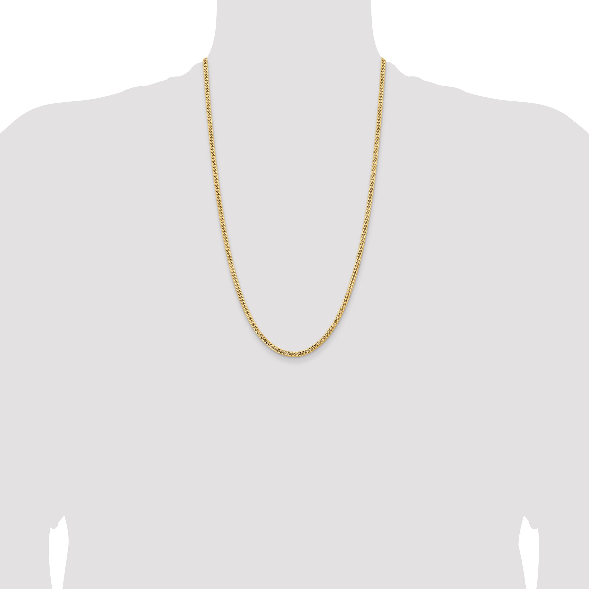 The 14K Yellow Gold 3.5mm Solid Miami Cuban Chain is a sleek and stylish piece perfect for any look. Crafted with high-quality 14K gold, it boasts a polished finish that makes it shine. The chain measures 26 inches long and 3.5mm wide, offering a bold yet comfortable fit. Its Cuban design adds a classic touch, while the lobster clasp ensures secure wear. This sturdy chain is ideal for everyday wear or layering with other jewelry. The 14K Yellow Gold 3.5mm Solid Miami Cuban Chain promises durability and style, making it a must-have for jewelry lovers.