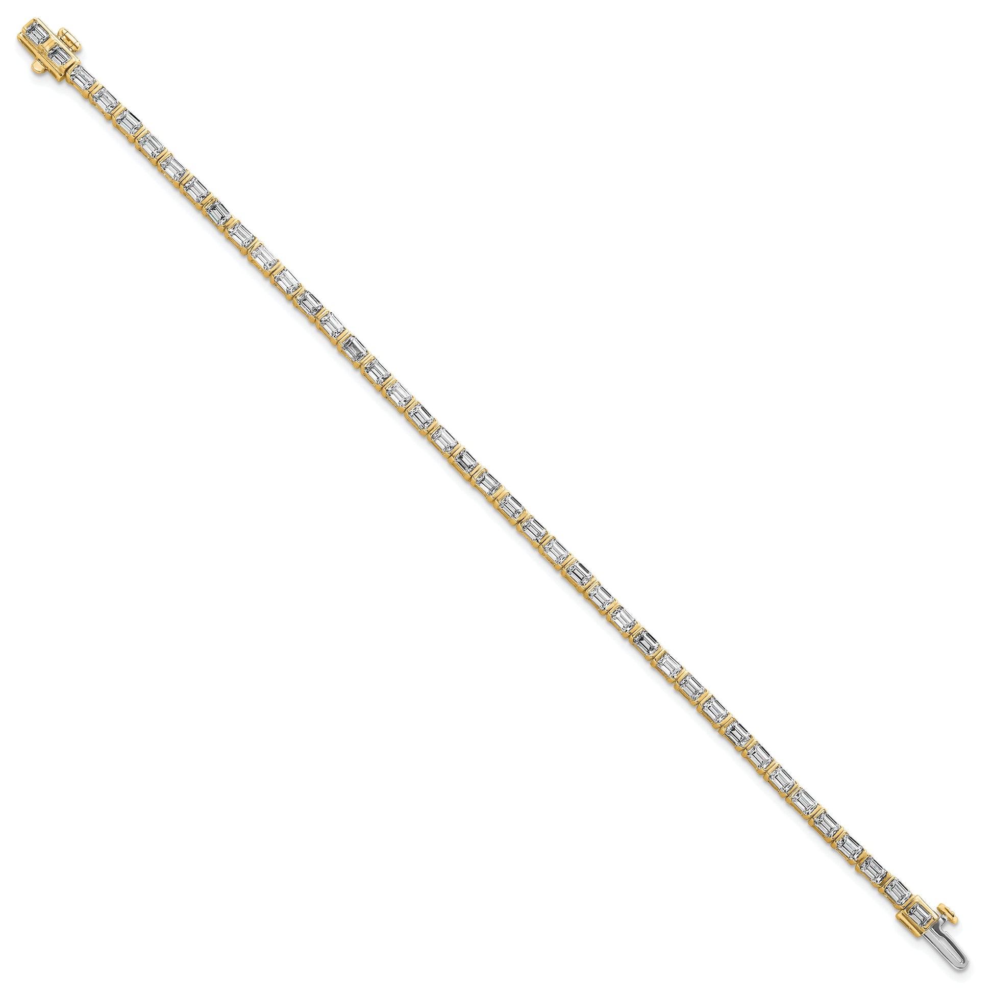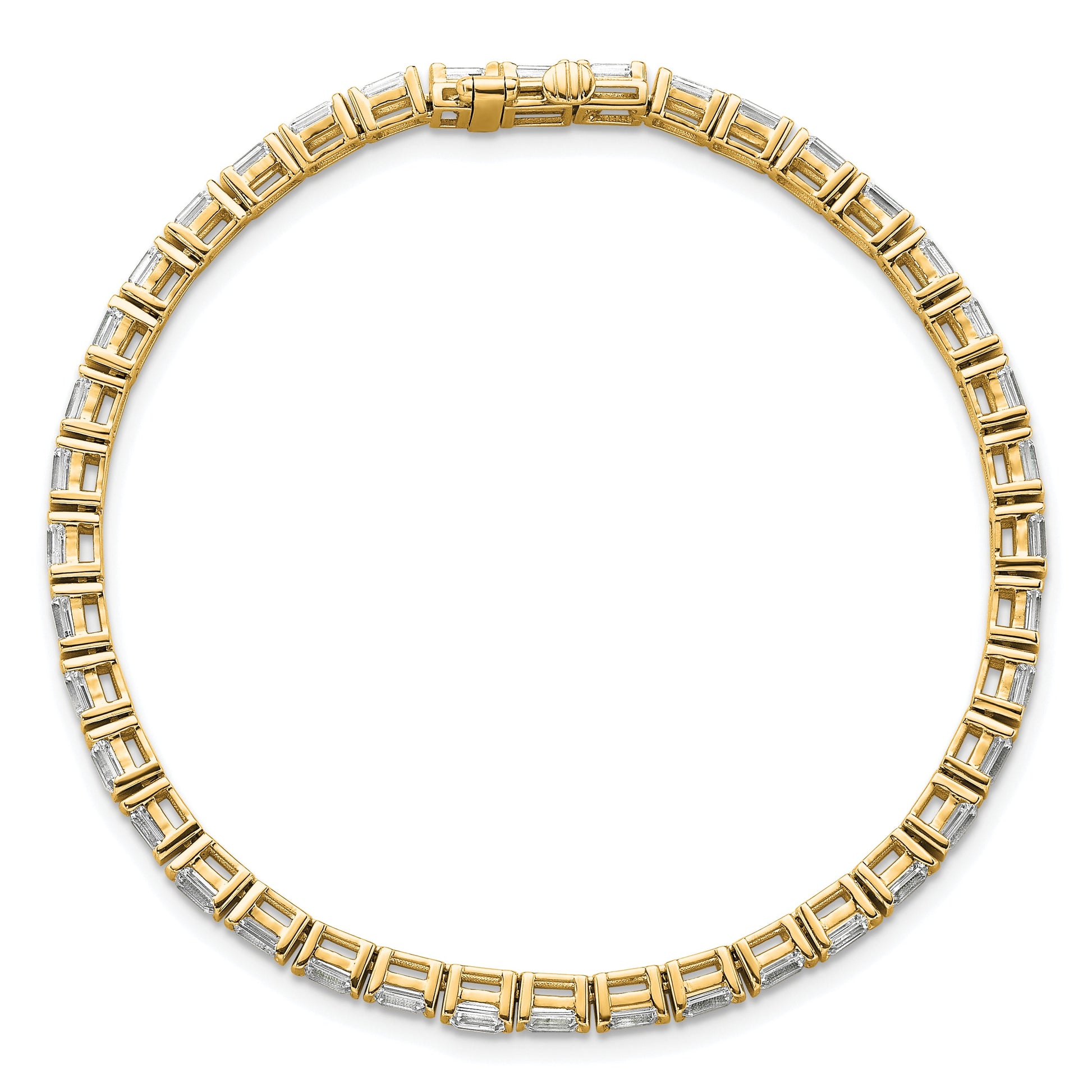 The 14K Yellow Gold 4 3/4 Carat Lab Grown Diamond Vs+ F+ Emerald Bezel Set Tennis Bracelet shines with modern charm. Crafted from bright yellow gold, this piece features stunning lab-grown diamonds that are eco-friendly and keep prices lower. The diamonds are carefully set in a bezel style, enhancing their brilliance and giving the bracelet a sleek look. With a total weight of 4.75 carats, this tennis bracelet offers both elegance and durability. The lab-grown stones grade well for clarity and color, making it a chic choice for any jewelry lover. The 14K Gold 4 3/4 Carat Lab Grown Diamond Vs+ F+ Emerald Bezel Set Tennis Bracelet is perfect for adding a touch of class to your ensemble.