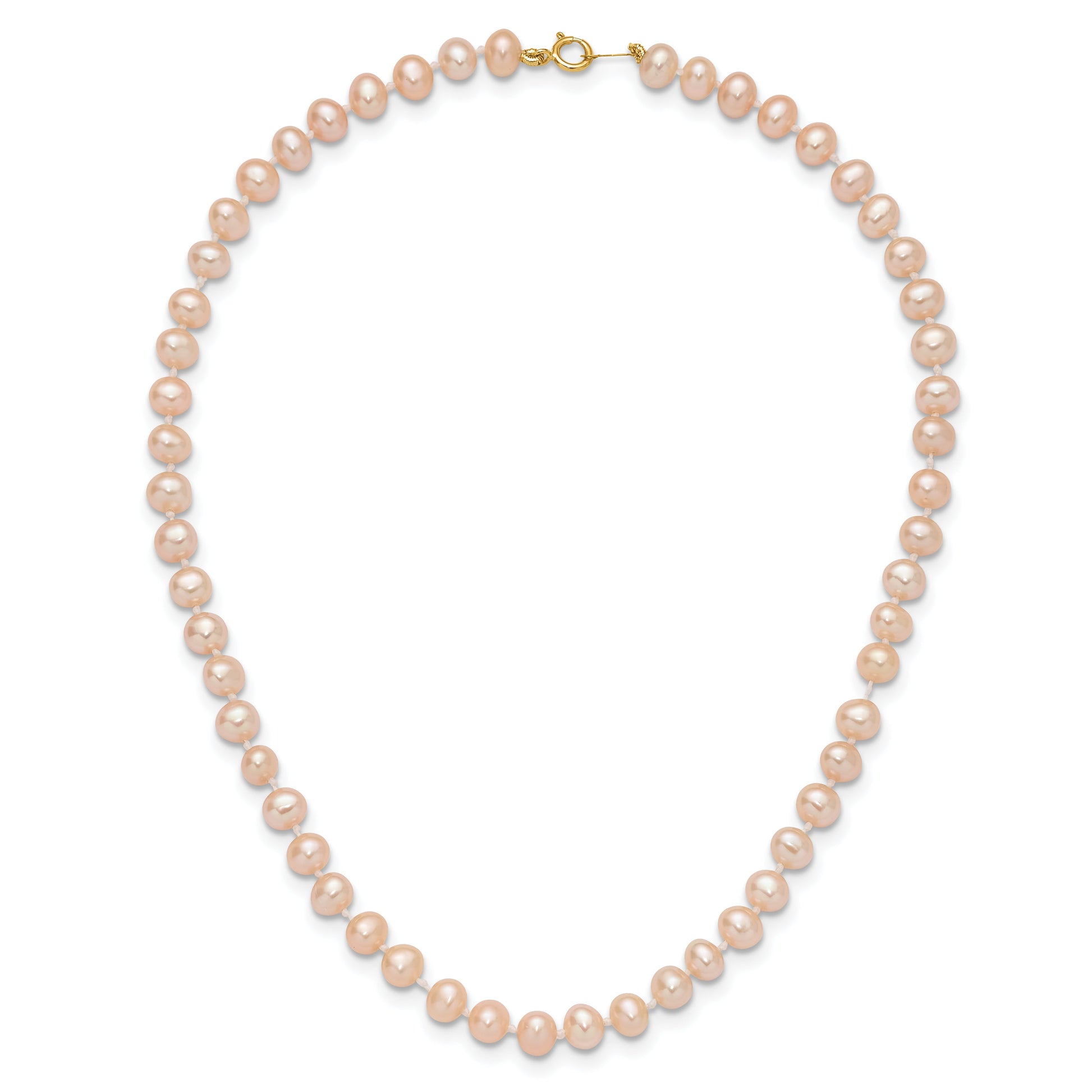 14K Yellow Gold 4 5mm Pink Near Round Freshwater Cultured Pearl Bracelet