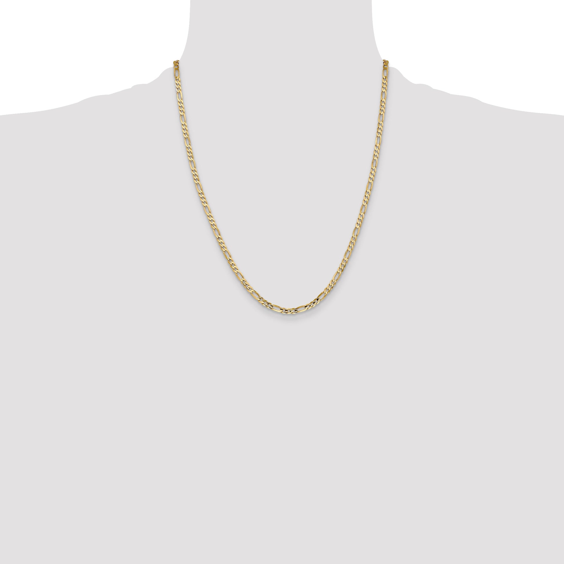 22 Inch 14K Yellow Gold 4mm Concave Open Figaro Chain Necklace