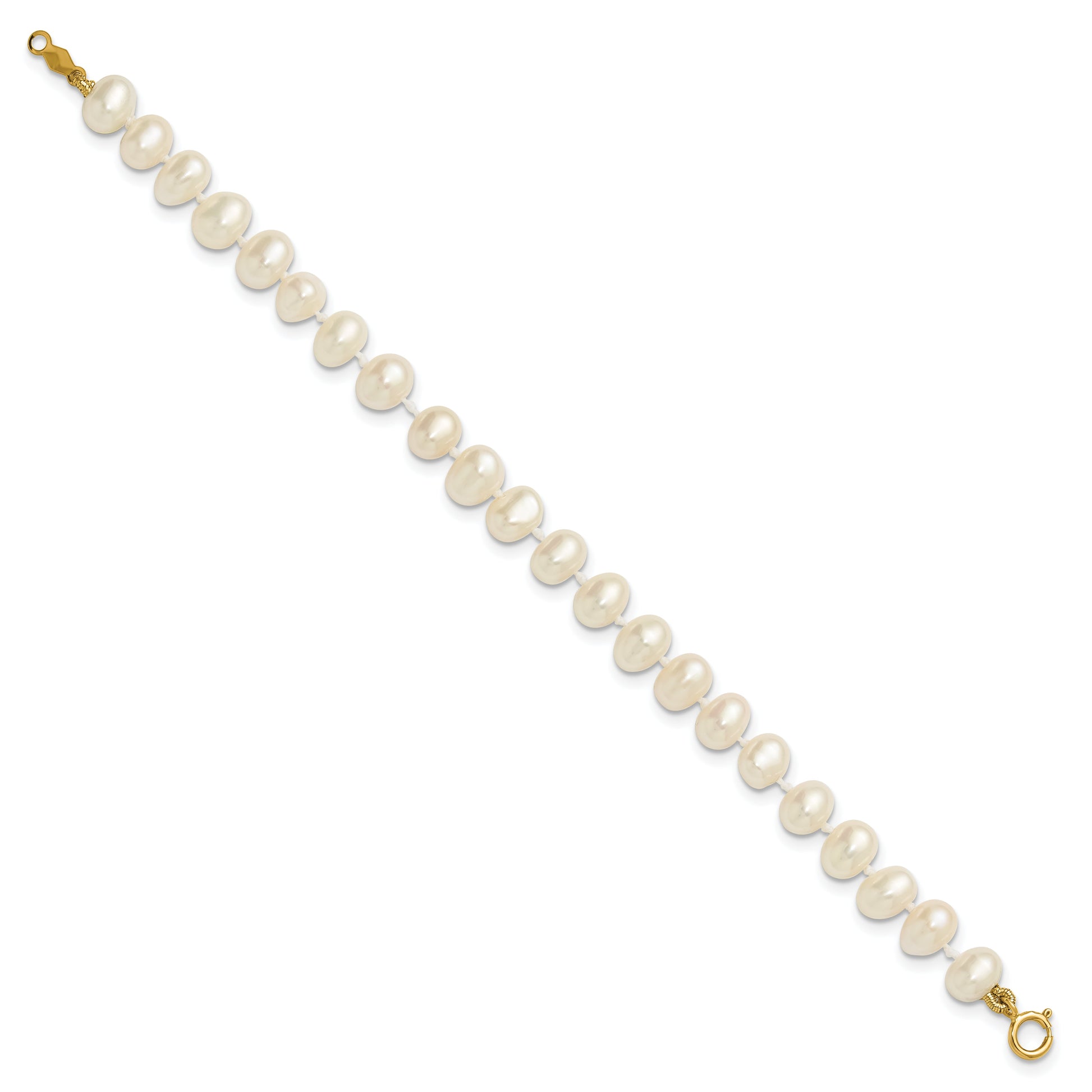 14K Yellow Gold 5 6mm White Semi Round Freshwater Cultured Pearl Inch Bracelet