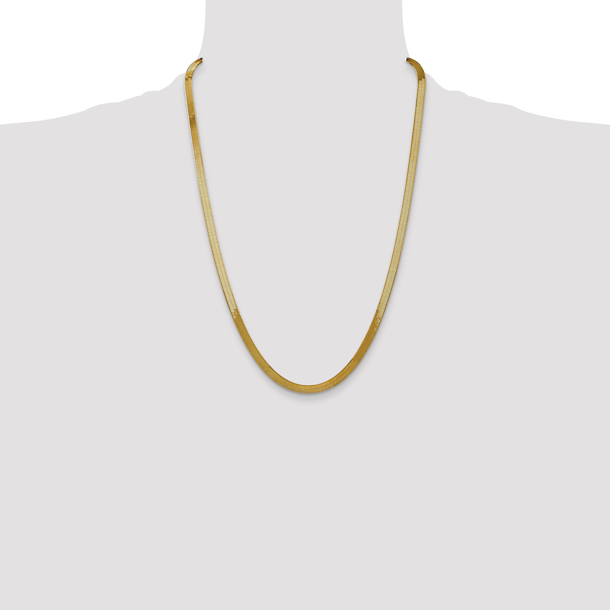 The 14K Yellow Gold Silky Herringbone Chain is a sleek and stylish piece that adds shine to any look. Made from high-quality 14K gold, it features a smooth, polished finish with a 5mm width that feels comfortable to wear daily. The 24-inch length makes it perfect for layering or wearing alone, and the lobster clasp keeps it secure. Crafted for both style and durability, the Silver Herringbone Chain promises a lifetime of use. Whether dressing up or down, the 14K Yellow Gold Silky Herringbone Chain is a must-have accessory that elevates any outfit with its classic charm.