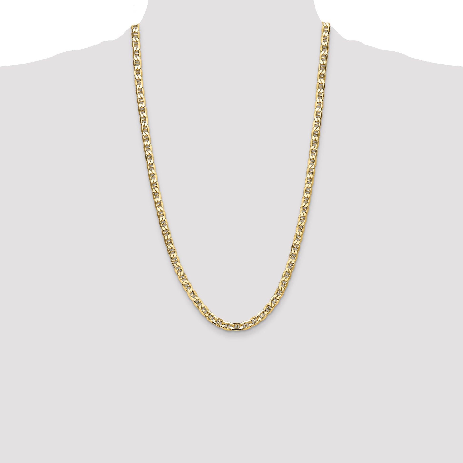 The 14K Yellow Gold 6.25mm Semi-Solid Anchor Chain radiates pure elegance. Crafted from 14K gold, this chain showcases a rich yellow hue. The 6.25mm semi-solid design offers both durability and a luxurious feel. Ideal for any occasion, it adds a touch of class to any outfit. Whether worn alone or with a pendant, the 14K Yellow Gold 6.25mm Semi-Solid Anchor Chain is a timeless piece that elevates your style effortlessly.