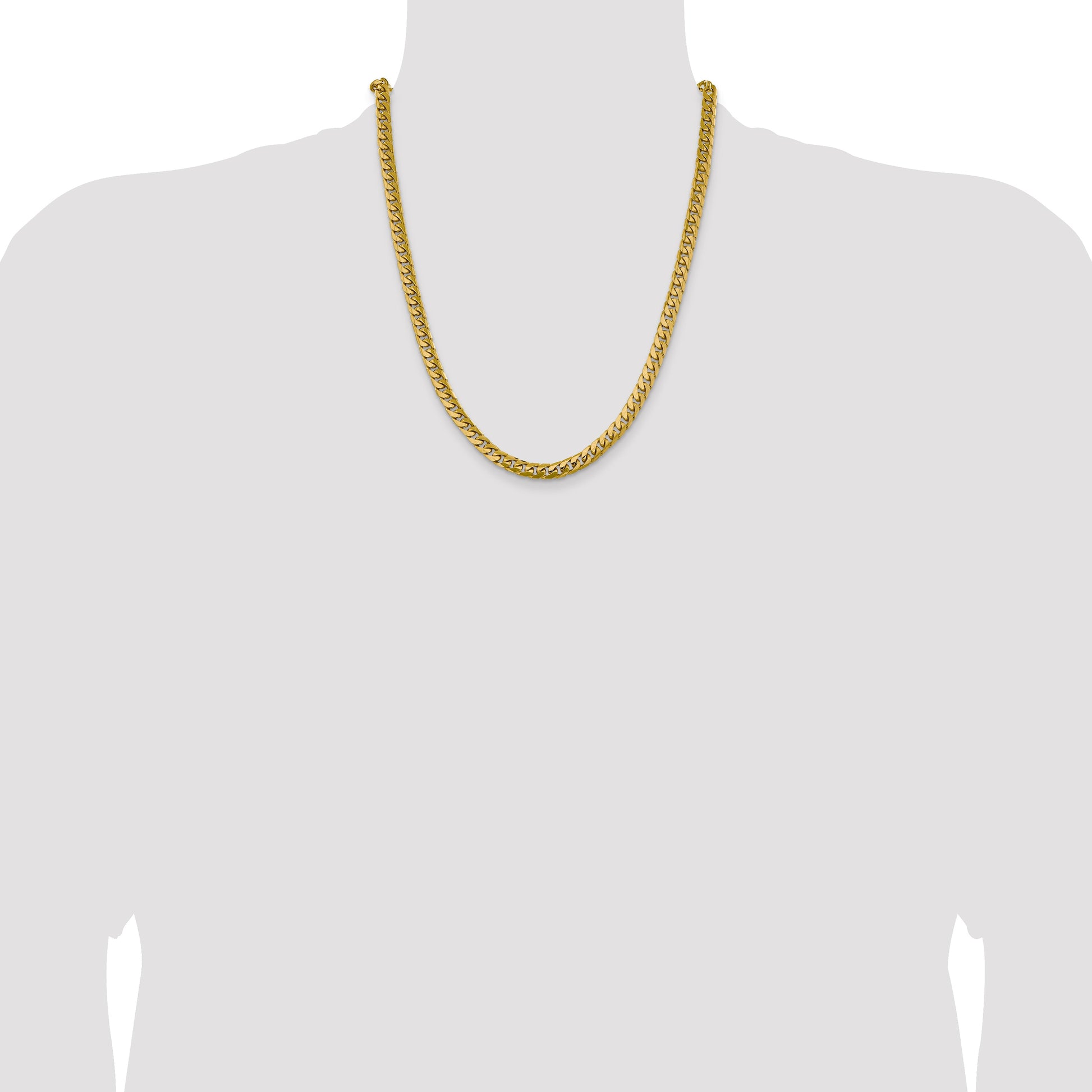 The 14K Yellow Gold 6.25mm Solid Miami Cuban Chain is a bold addition to any jewelry collection. Measuring 22 inches, this chain offers a sturdy, polished look that catches the eye. Crafted from high-quality 14K gold, it provides long-lasting shine and durability. Its classic Cuban link design ensures a comfortable fit, perfect for daily wear or dressing up an outfit. The lobster clasp keeps it secure while making it easy to put on or take off. This chain is a great way to add a touch of luxurious style to your look with the trusted quality of the 14K Yellow Gold 6.25mm Solid Miami Cuban Chain.