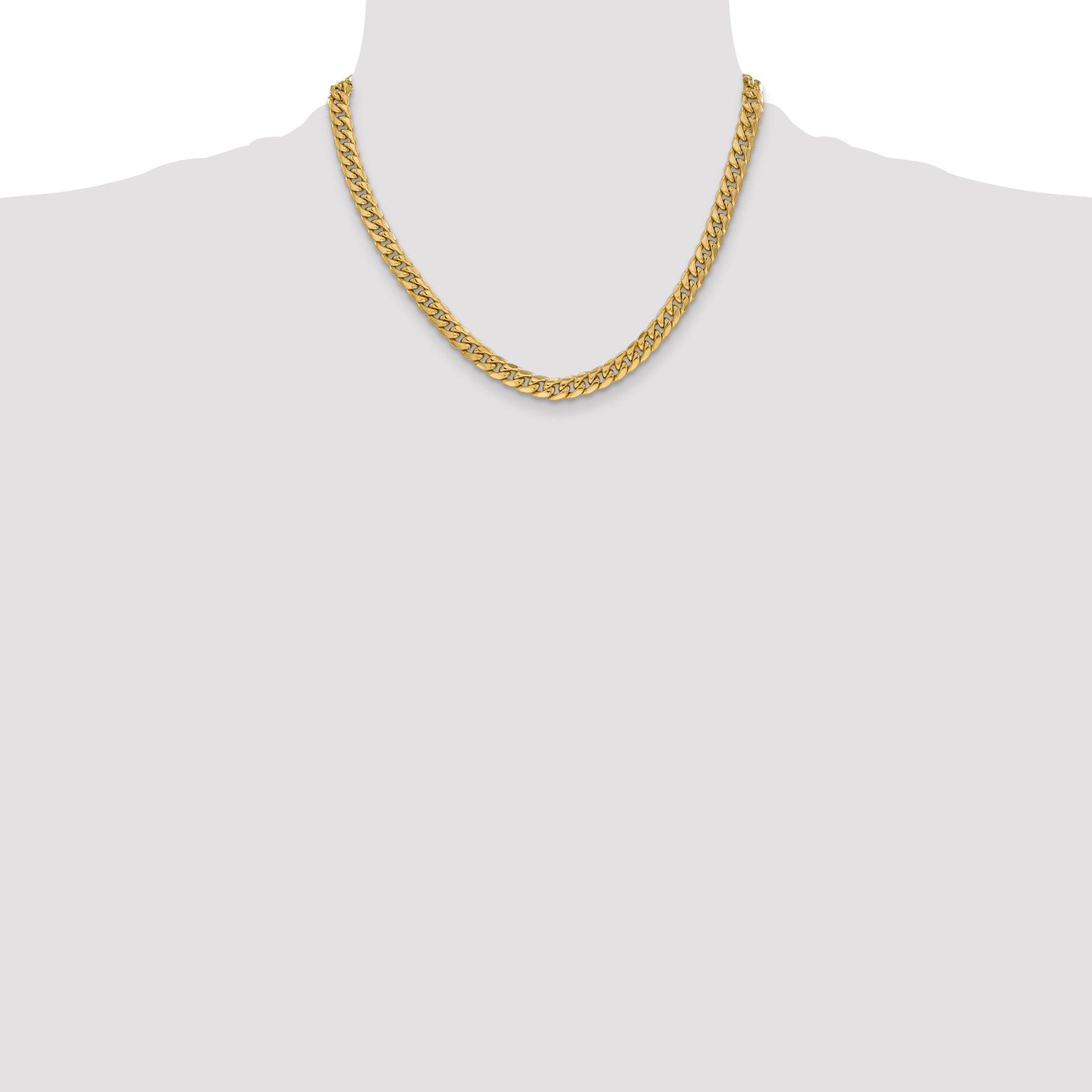 The 14K Yellow Gold 6mm Semi-Solid Miami Cuban Chain is a bold jewelry piece that adds style to any look. Crafted from high-quality 14K gold, it features a sleek polished finish for a shiny, eye-catching look. The 18-inch chain offers a comfortable fit and comes with a secure lobster clasp. Its wide 6mm Cuban links deliver durability and a trendy vibe. Perfect for everyday wear or layering, the Miami Cuban Chain is a versatile choice for those who want lasting quality and standout style. This stunning necklace makes a great gift and comes with a lifetime guarantee for peace of mind.